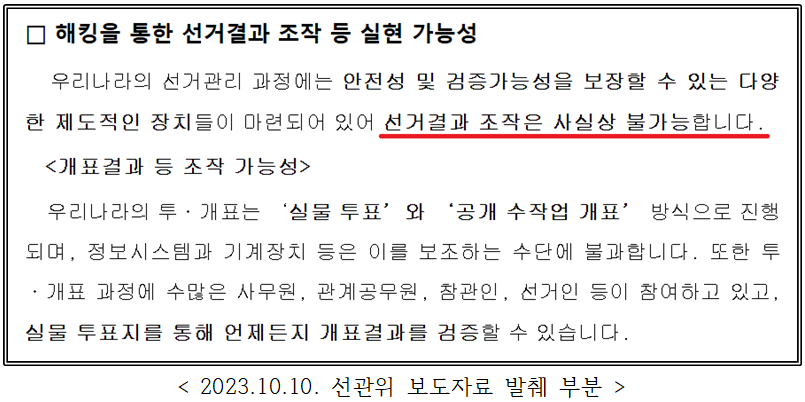 작년 12월 3일 비상계엄을 선포한 윤석열 대통령이 계엄 선포 사유 중 하나로 투개표부정선거 의혹을 제기한 것에 대하여 심히 안타까운 입장이다.