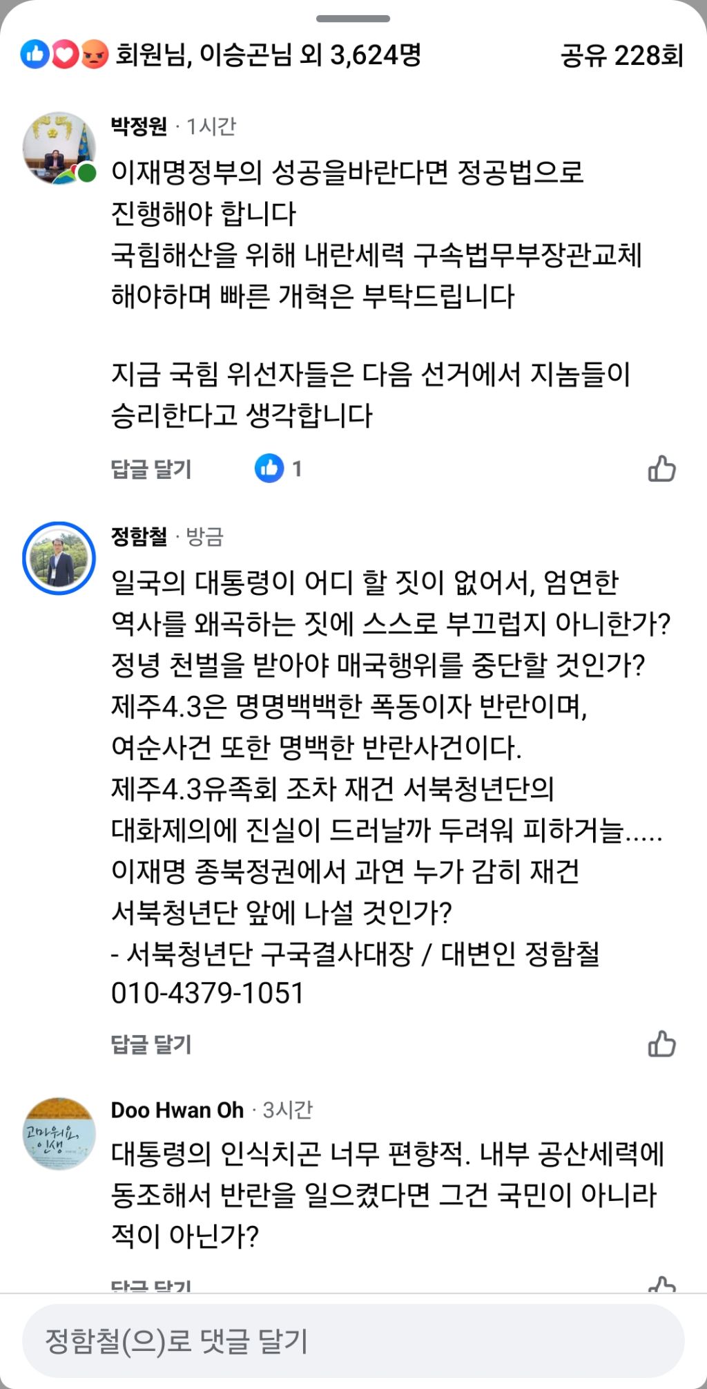 - 서북청년단 구국결사대장 / 대변인 정함철 010-4379-1051