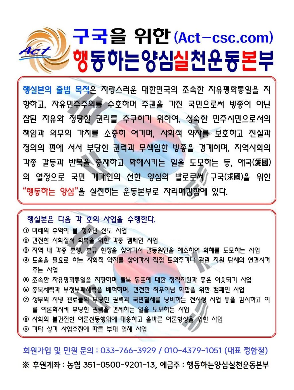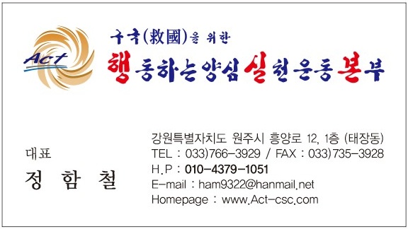 - 행동하는양심실천운동본부(행실본, Act-csc.com) 대표 정함철 010-4379-1051