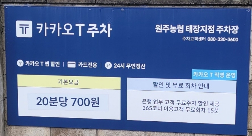 2. 카카오T 원주농협 태장지점 주차장(유료)