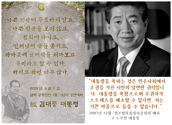 이건 저들이 그토록 부르짖는 노무현 정신과도 정면으로 배치되는 것인데, 노무현 대통령께서는 대통령을 욕하는 건 민주시민의 당연한 권리라고 분명히 말씀하셨다.