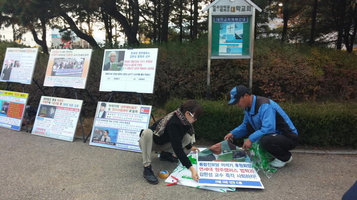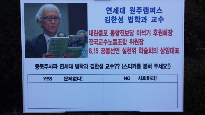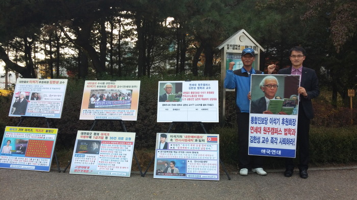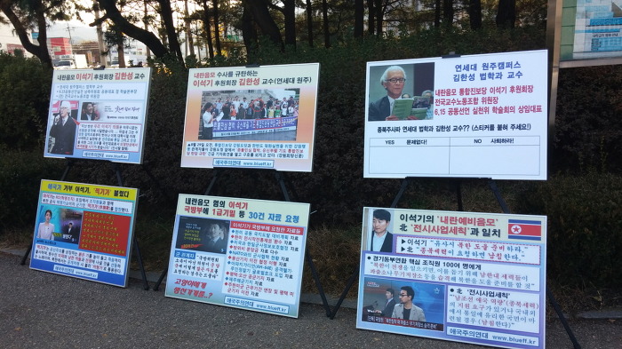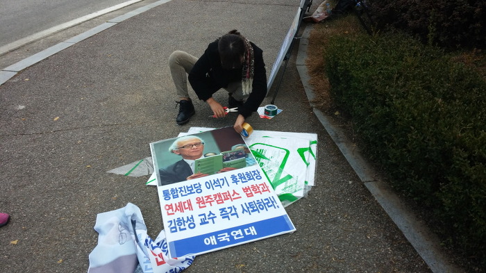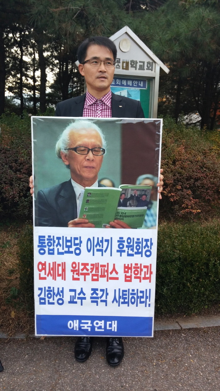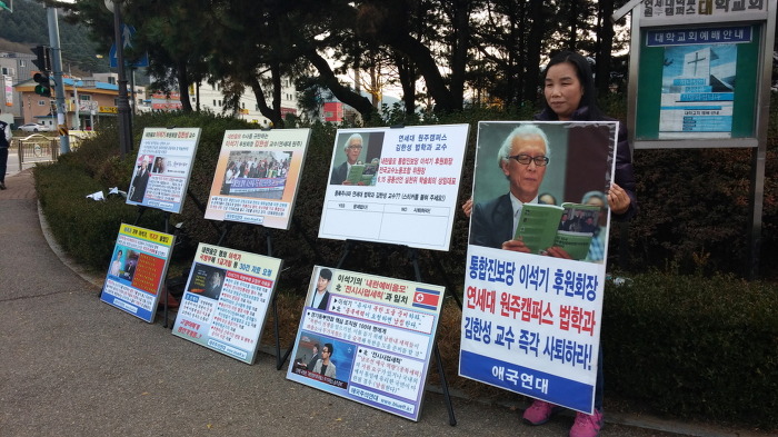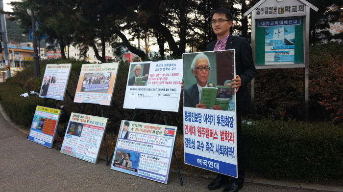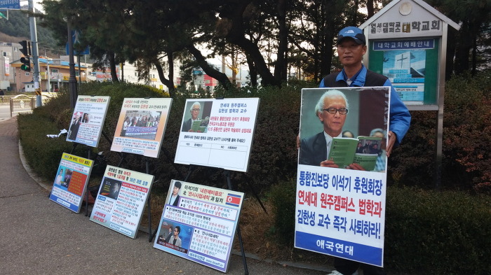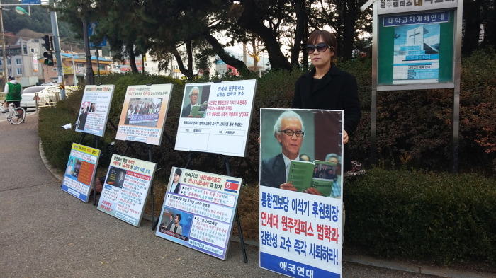 연세대 원주캠퍼스 법학부에 이런 매국노 교수가 있었다는게 믿기지 않았지만... 오늘 맛보기 1인 시위에서 지나가는 학생들이 많은 관심을 보이더군요~