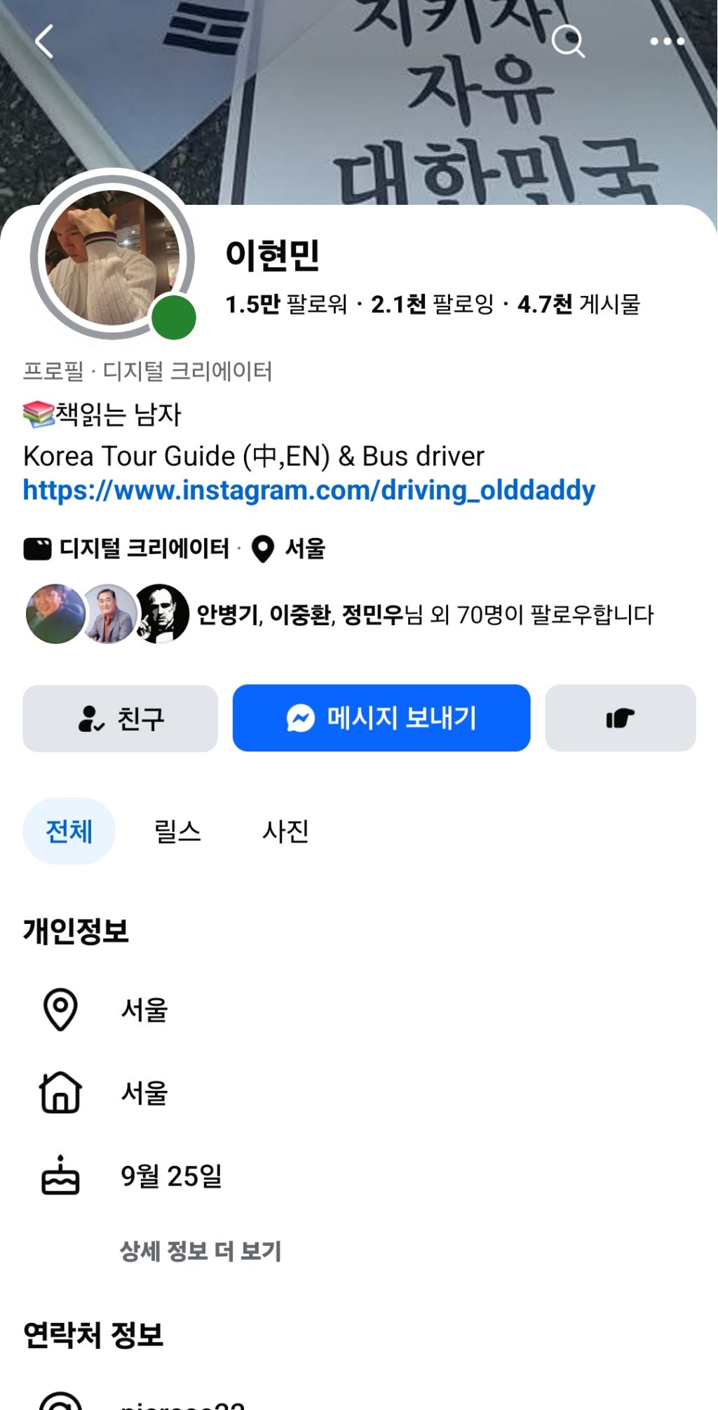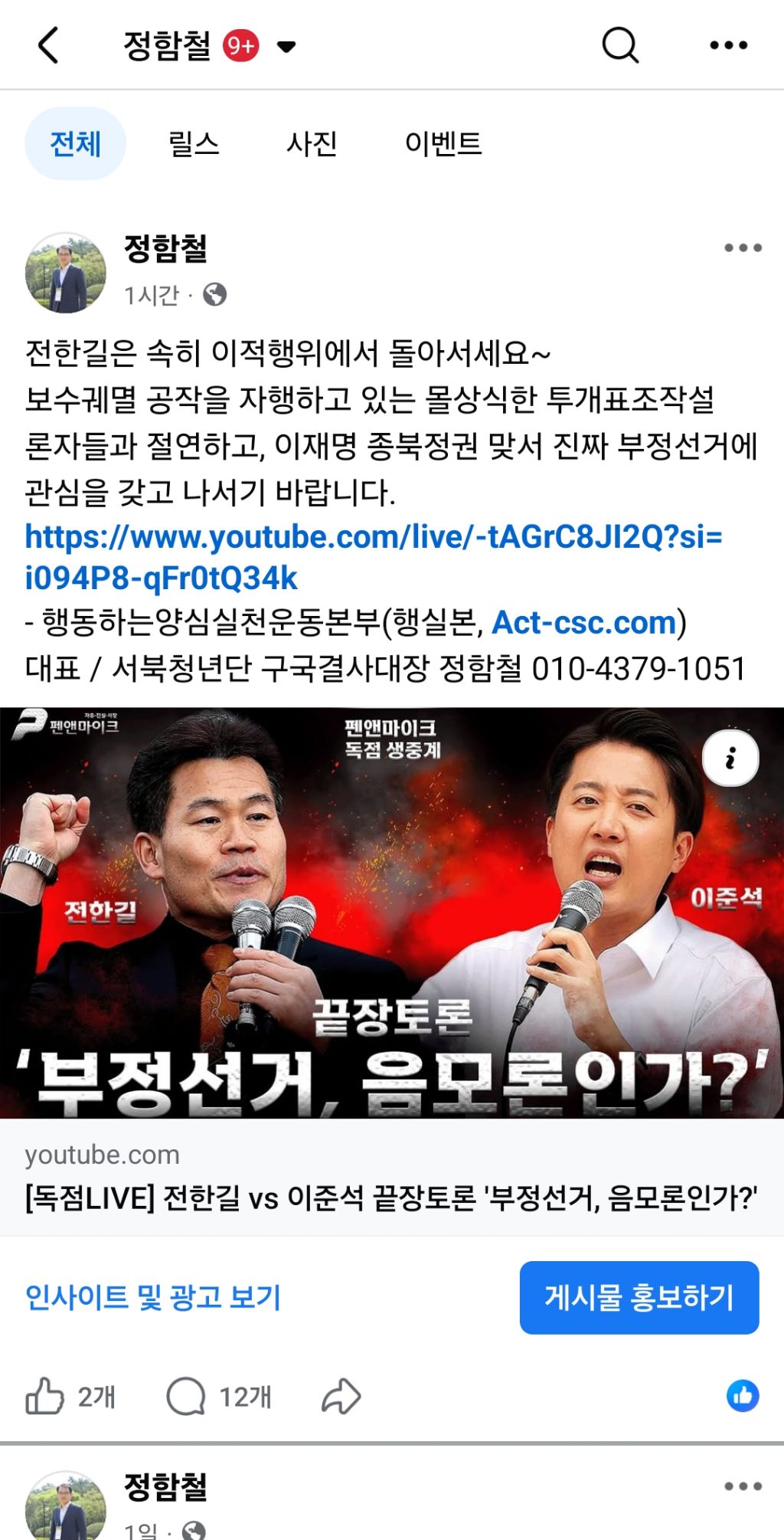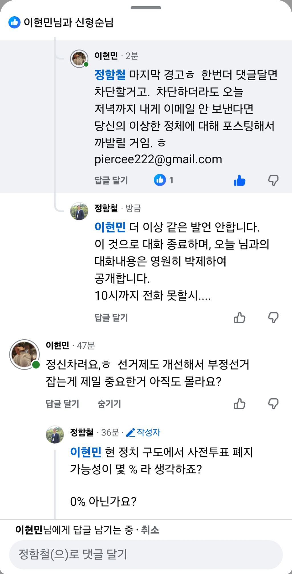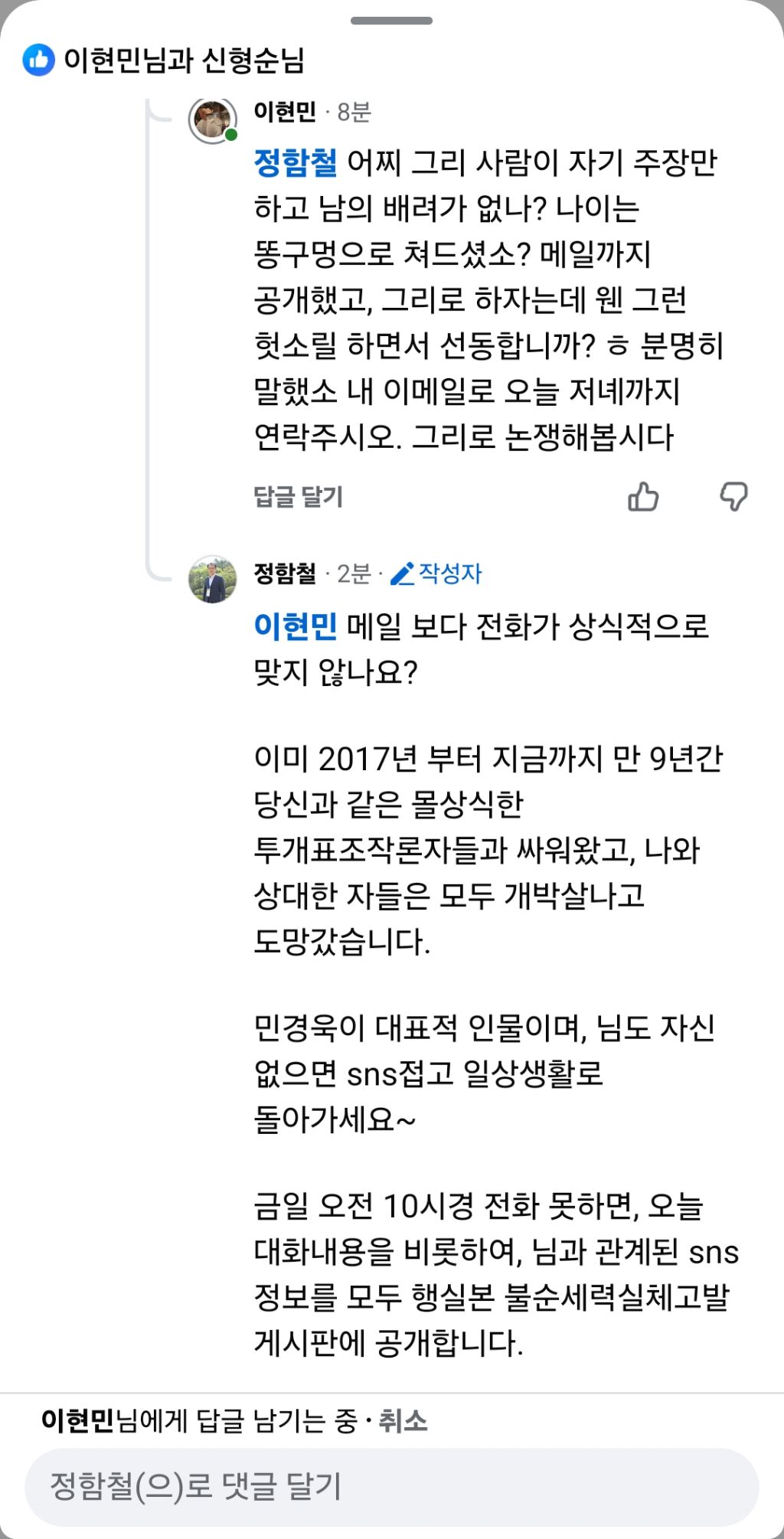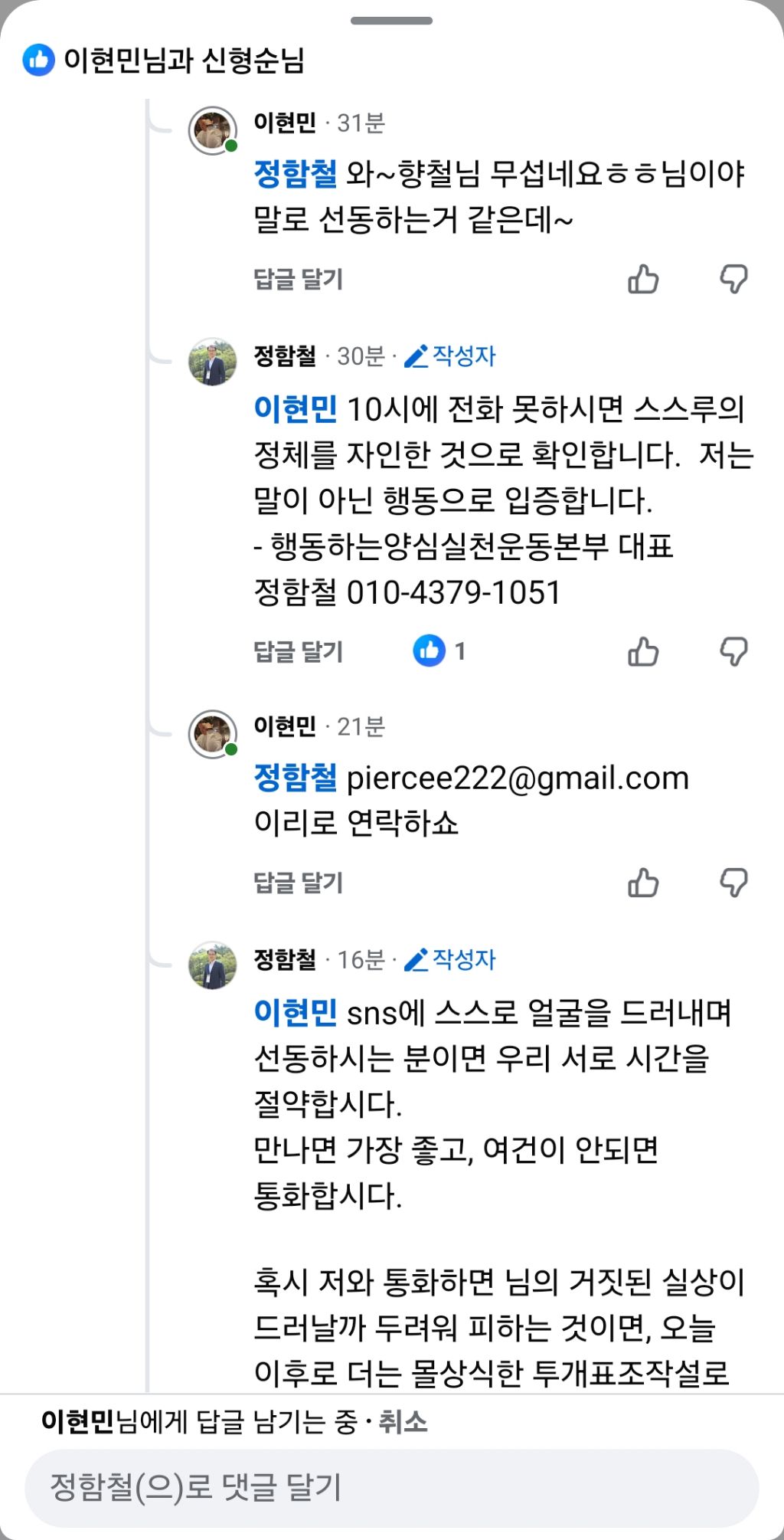 페이스북에서 활약 중인 보수궤멸작전세력 이현민 작성자정함철(요나답)|작성시간26.02.28|조회수139 목록 댓글 0 글자크기 작게가 글자크기 크게가 다음검색 현재 게시글 추가 기능 열기 북마크 공유하기 신고 센터로 신고 댓글 댓글 0 댓글쓰기 답글쓰기 댓글 리스트
