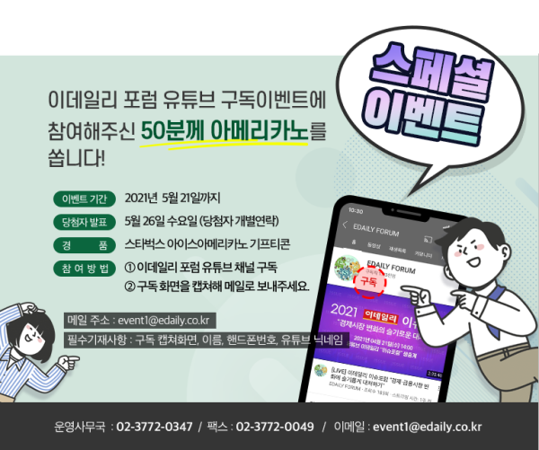 - 이데일리 포럼 유튜브 구독이벤트 50명에게 아메리카노를 쏩니다!