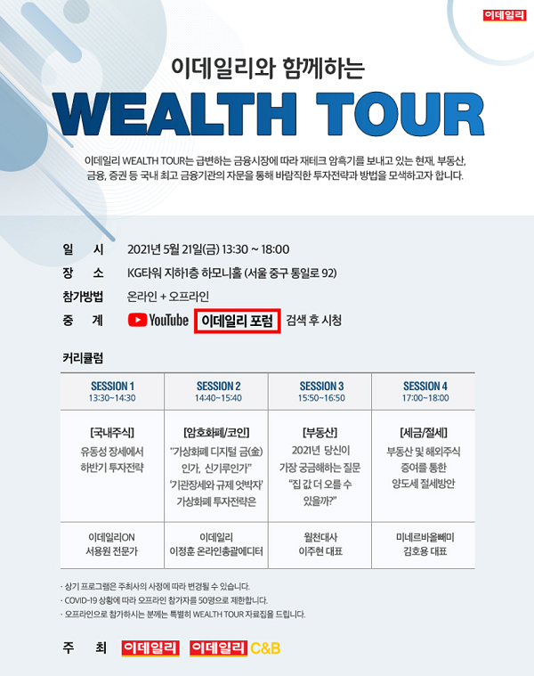 이데일리와 함께하는 WEALTH TOUR 2021 ★유튜브 구독 이벤트 놓치지 마세요!★