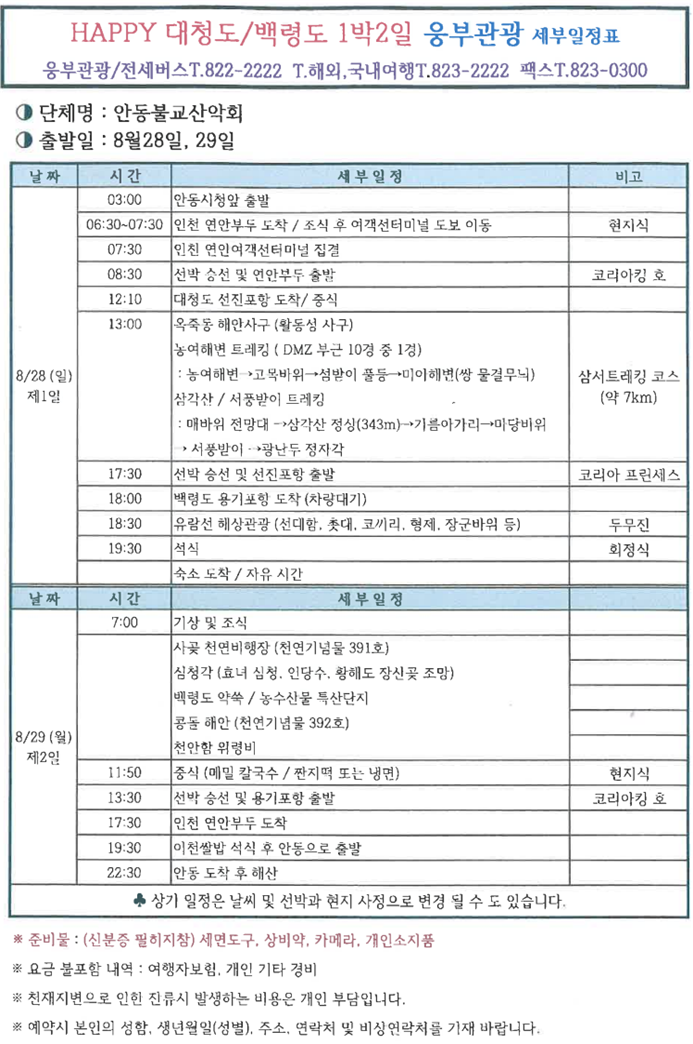 회원님께 다음과같이 제262차 대청도,백령도 기획 산행안내입니다.