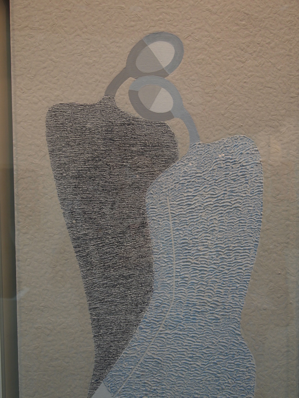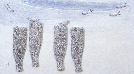 그러면서도 그는 비어있는 공간에 새를 놓아 두는 시적 감성을 여전히 숨기지 않고 있다. 그의 화면에 이 색조는 평론가 오세권이 지적하듯이 회색의 태토위에 백토로 표면을 분장한 분청사기의 모습에 단면을 떠올린다.