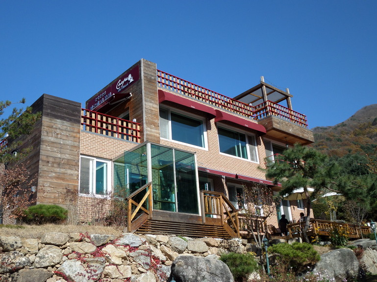 '에라 모르겠다 .어떻게 되겠지'하고 체념하고 서종 인터체인지에서 대략 20여분 정도 게곡을 따라 굽이굽이 달려온 곳 길 마즌편 산자락 중턱에 2~3층 정도로 보이는 건물이 눈에 들어온다.