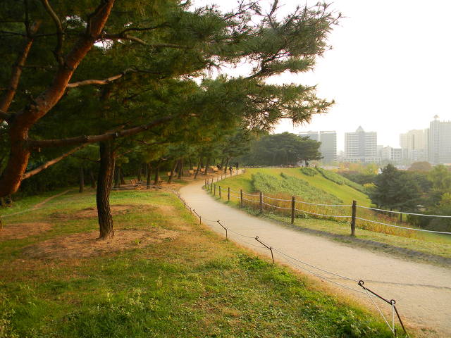 몽촌토성 산책로는 경사도 거의 느슨하여 누구든 편히 거닐 수 있는 착한 길이다. 제아무리 |
