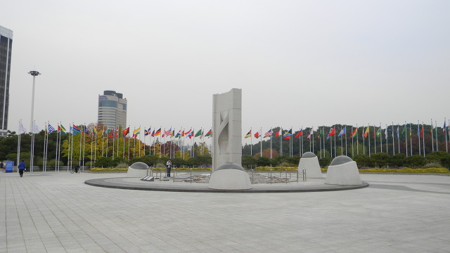 세계평화의문을 들어서면 평화의광장이 마중을 나온다. 광장 좌우에는 공원안내센터와 편의점 |
