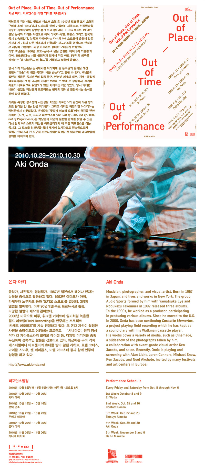 [백남준아트센터] 국제 퍼포먼스 프로그램 4주차 온다 아키Aki Onda, <Out of Place,Out of Time,Out of Performance>
