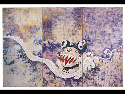 역시 전통 일본화의 양식을 차용한것으로 원래 저 생쥐(?)자리에는 큼직한 잉어가 있어야 한다. 잉어대신 커다란 이빨을 자랑하는 녀석은 다카시 무라카미가 애용하는 케릭터이다.