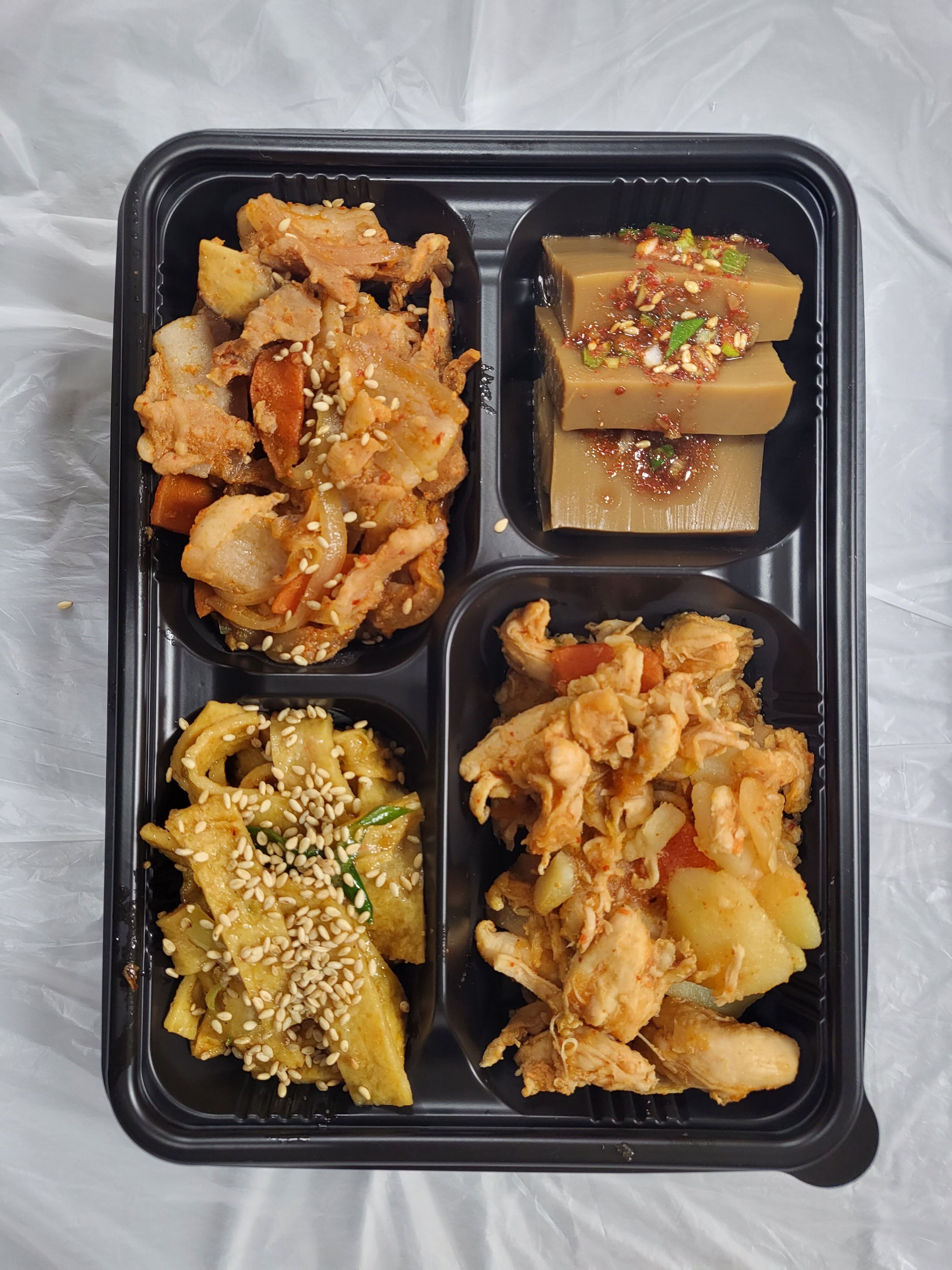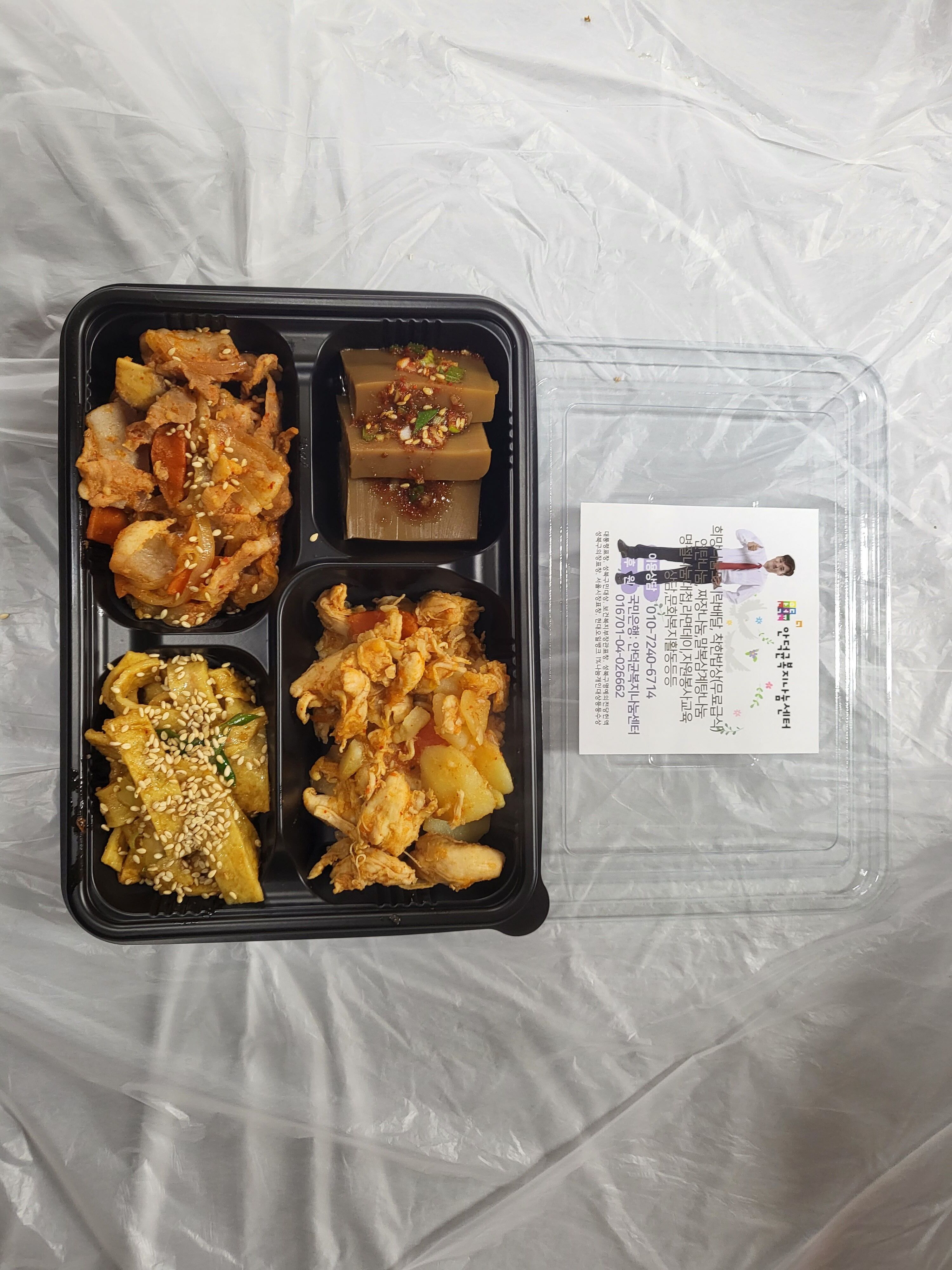 메뉴는 닭볶음탕 제육불고기 어묵볶음 묵무침으로 정성을 다해