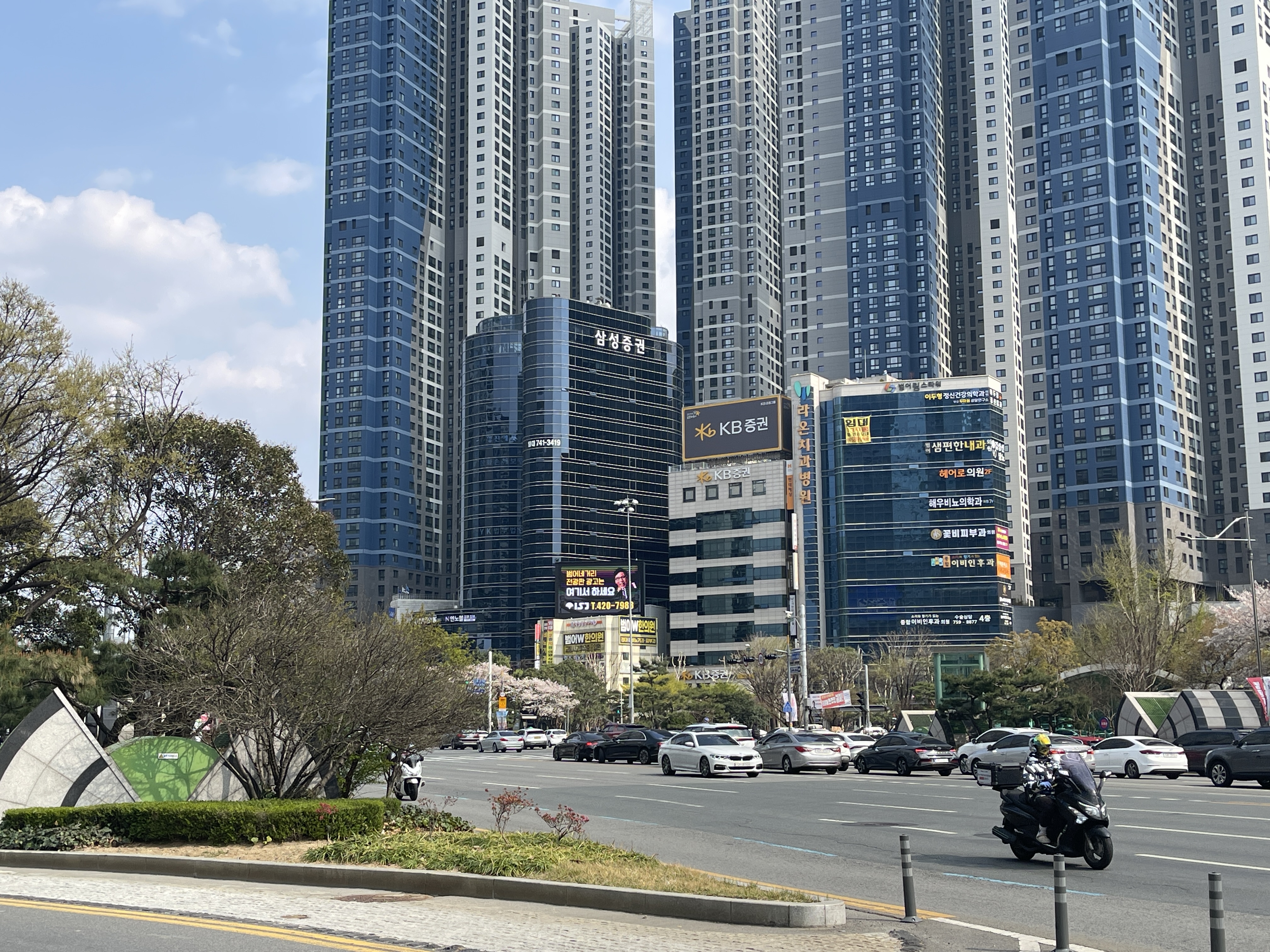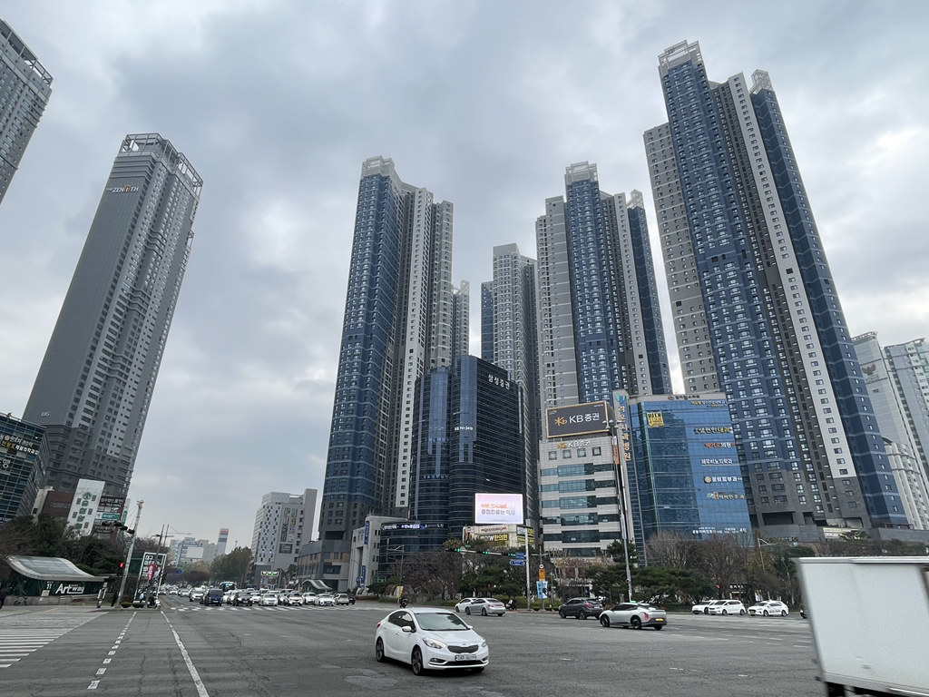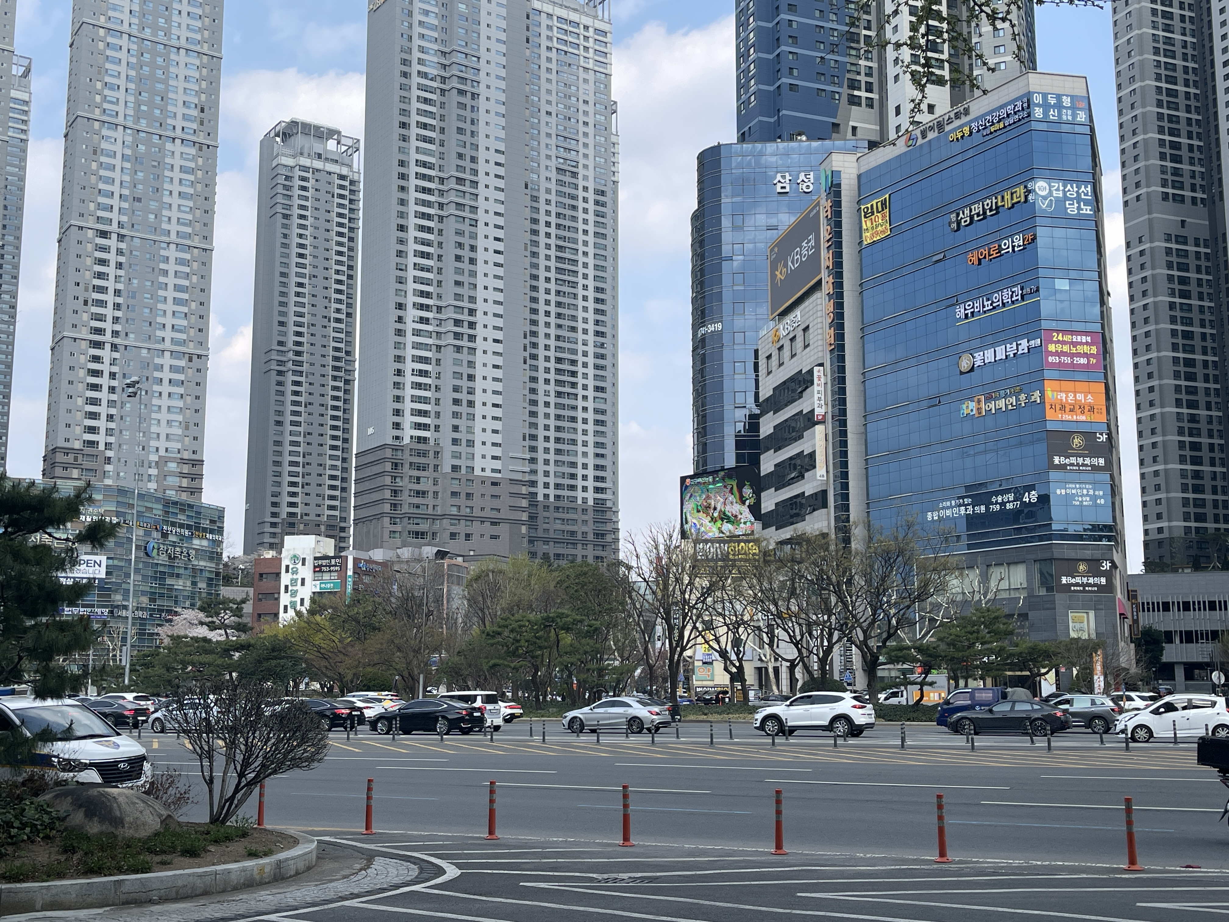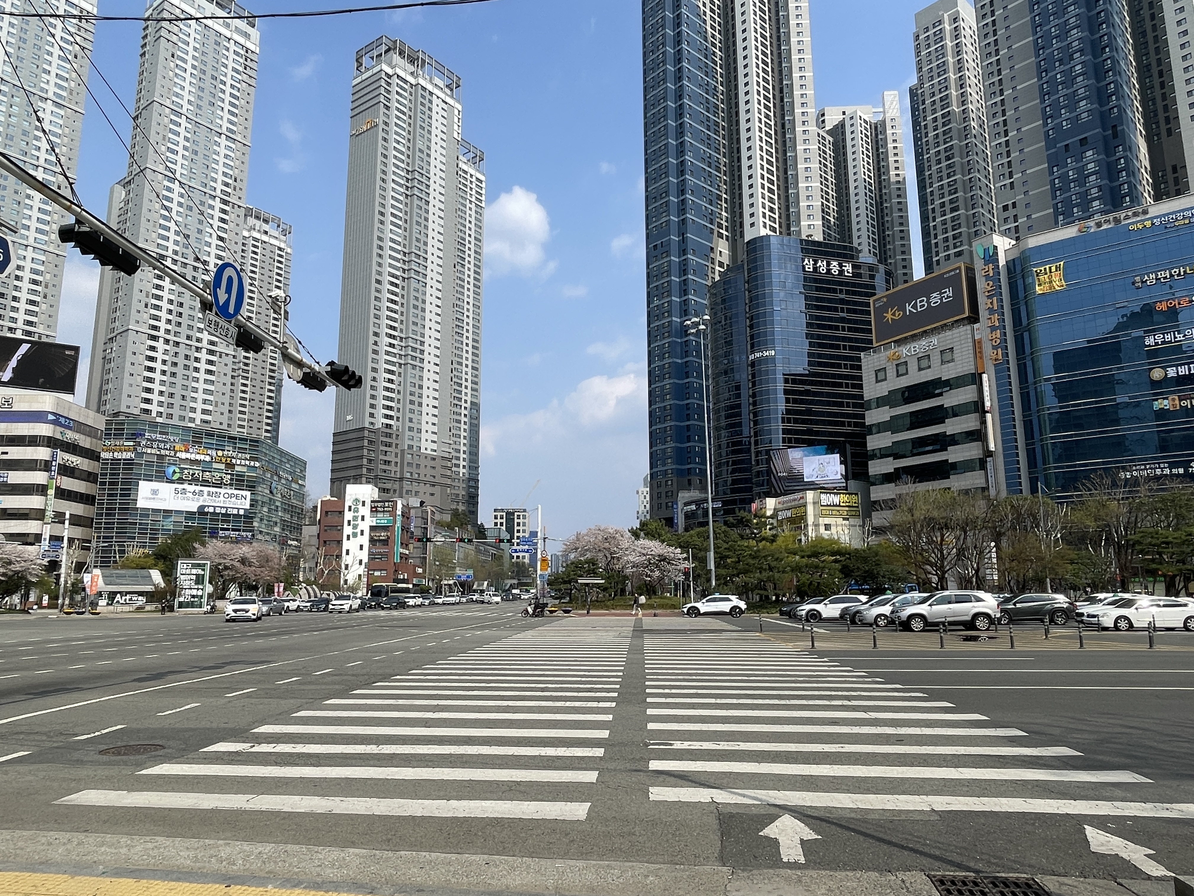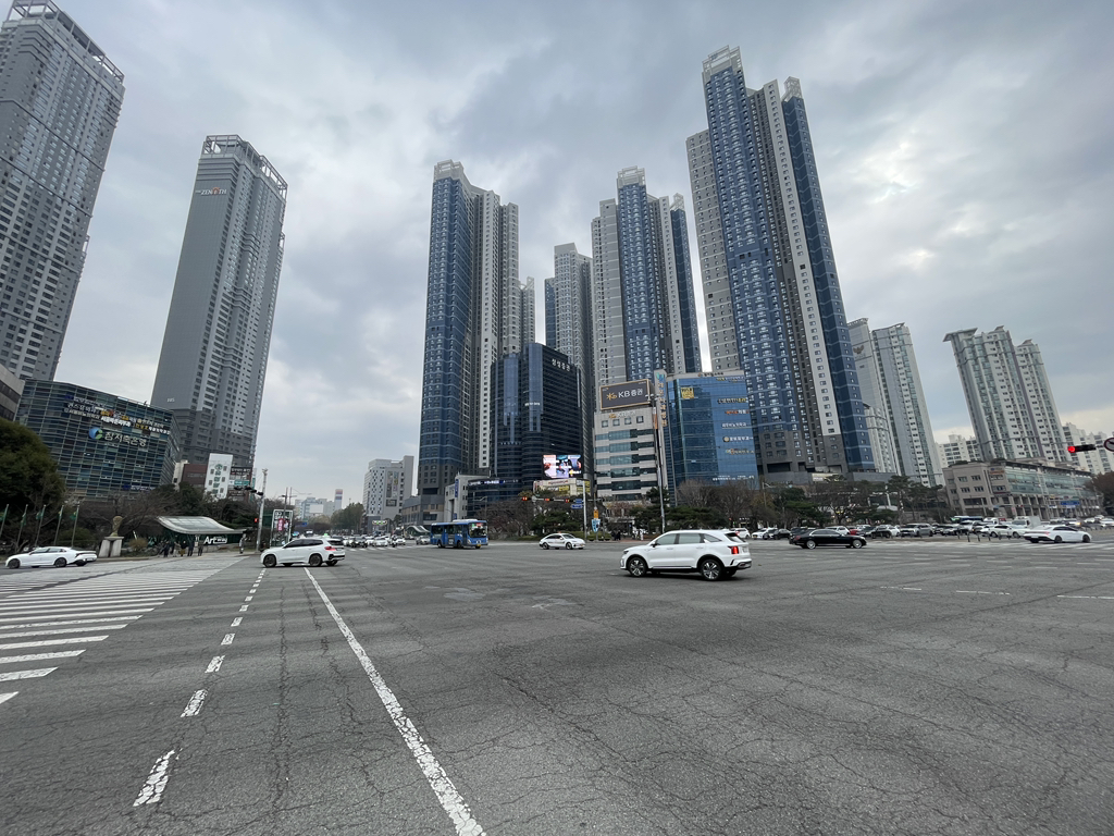 범어네거리 그랜드호텔 방면 보행자 눈높이에서 잘 보입니다