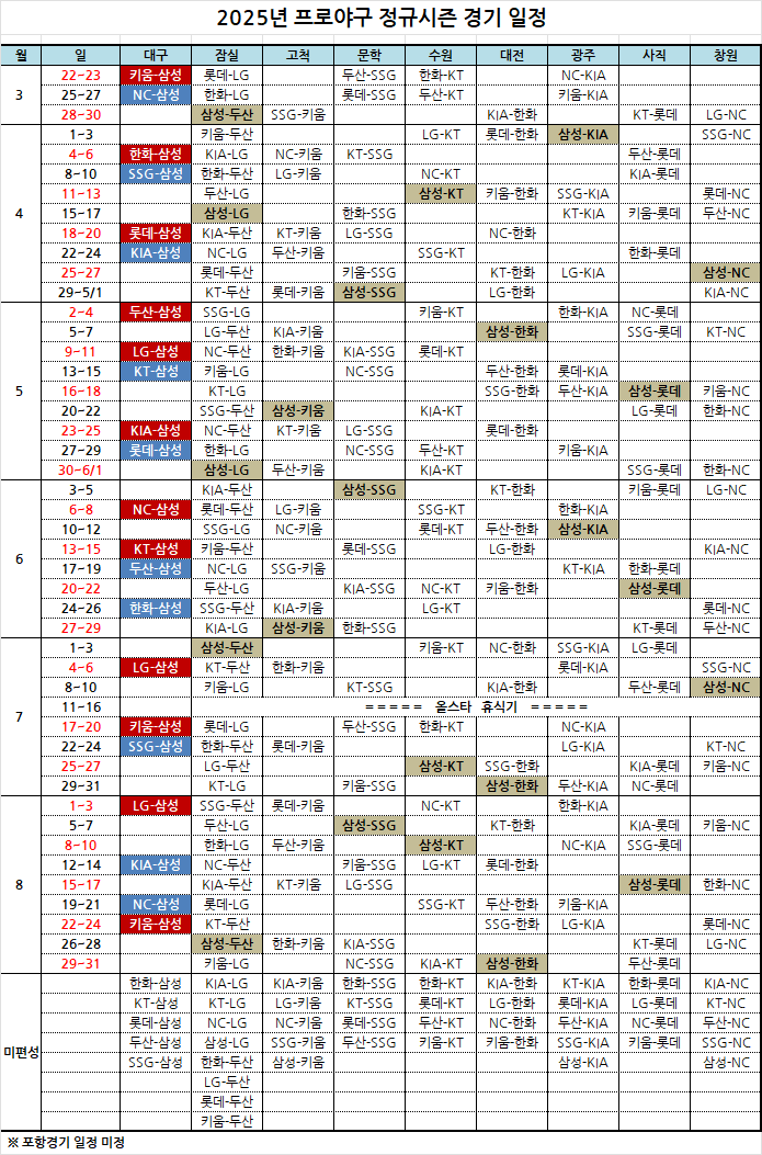 KBO는 2025년 시범경기 일정을 발표하였습니다.