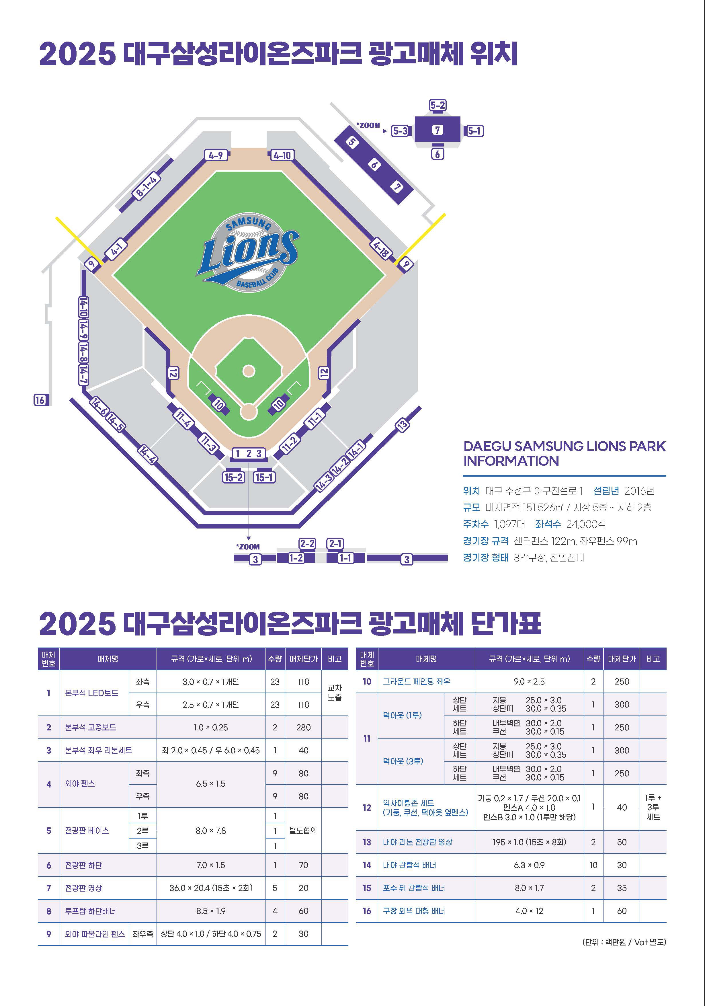 2026시즌 #삼성라이온즈파크 광고매체 와 광고금액은 미정이지만