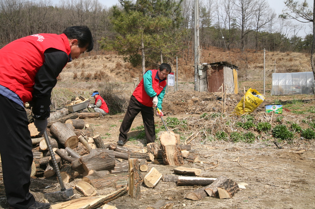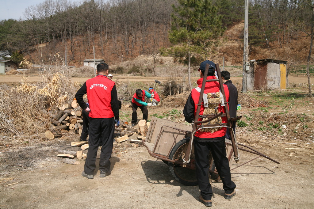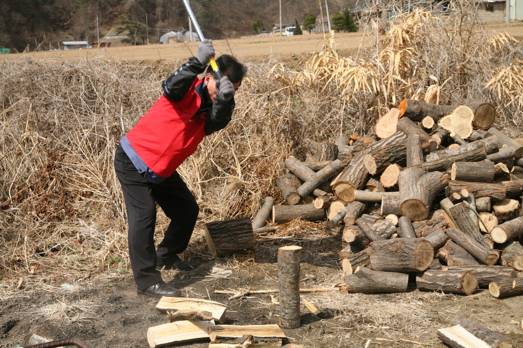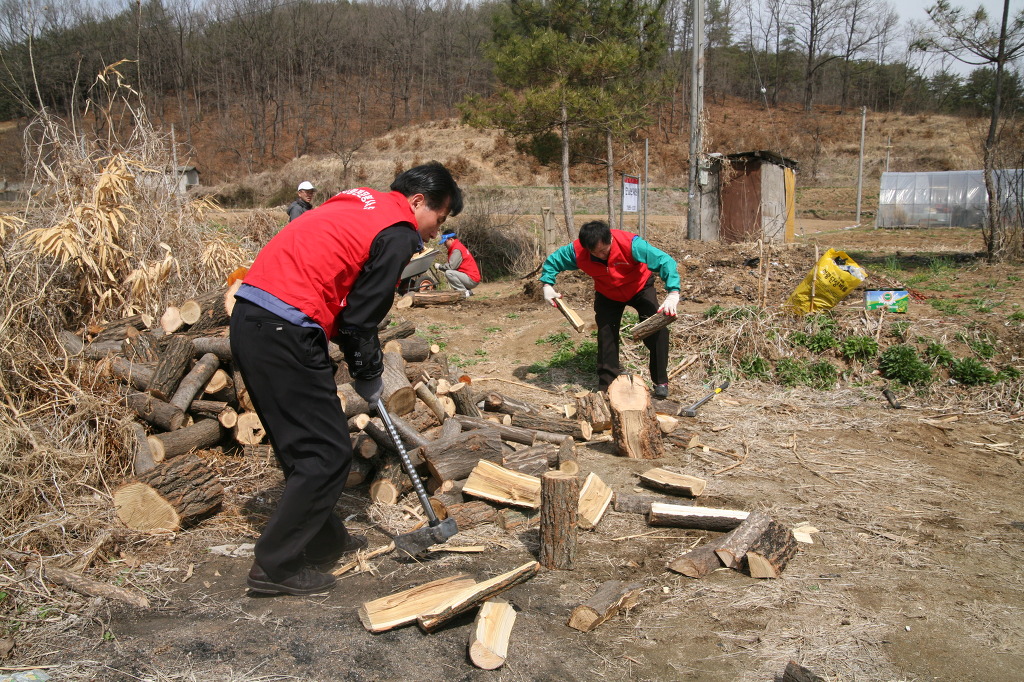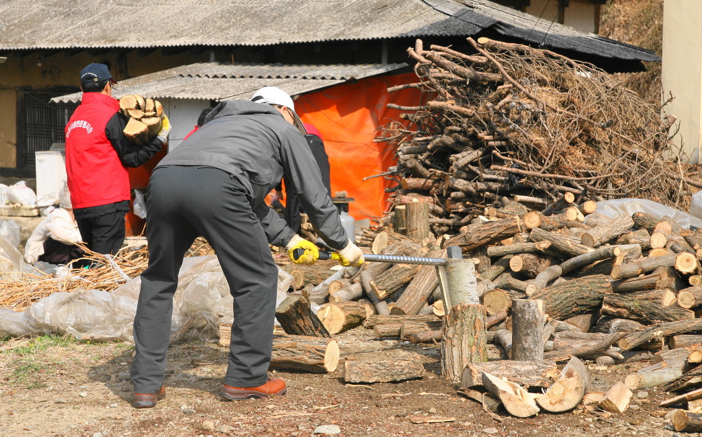 회원들이 9시전에 도착해 혼자 사시는 할머니가 사용할 화목을