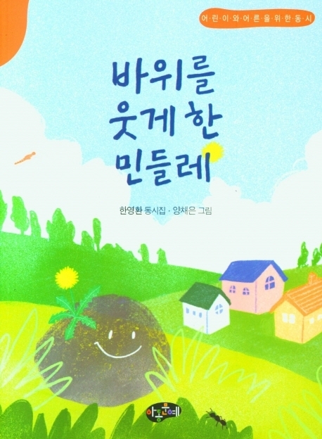 바위를 웃게한 민들레 / 한영환 작성자아동문예|작성시간21.12.28|조회수31 목록 댓글 0 글자크기 작게가 글자크기 크게가 조회 수 6 추천 수 0 댓글 0?가출판사 : 아동문예지은이 : 한영환 / 그린이 : 양채은 / 가격 : 11,000원 주변을 둘러보면 의미없는 것은 하나도 없습니다.풀 한 포기, 꽃 한 송이, 크고 작은 동물 등생명을 지니고 있는 존재뿐만 아니라 길가에 구르는 돌멩이,마을 어귀를 지키는 바위와 같은 무생물도 나름대로 의미를 지니고 있습니다.이러한 존재들이 서로 어울려 함께 살아가는 세상 이야기를 표현하고 싶었습니다. 다음검색 현재 게시글 추가 기능 열기 북마크 공유하기 신고 센터로 신고 댓글 댓글 0 댓글쓰기 답글쓰기 댓글 리스트