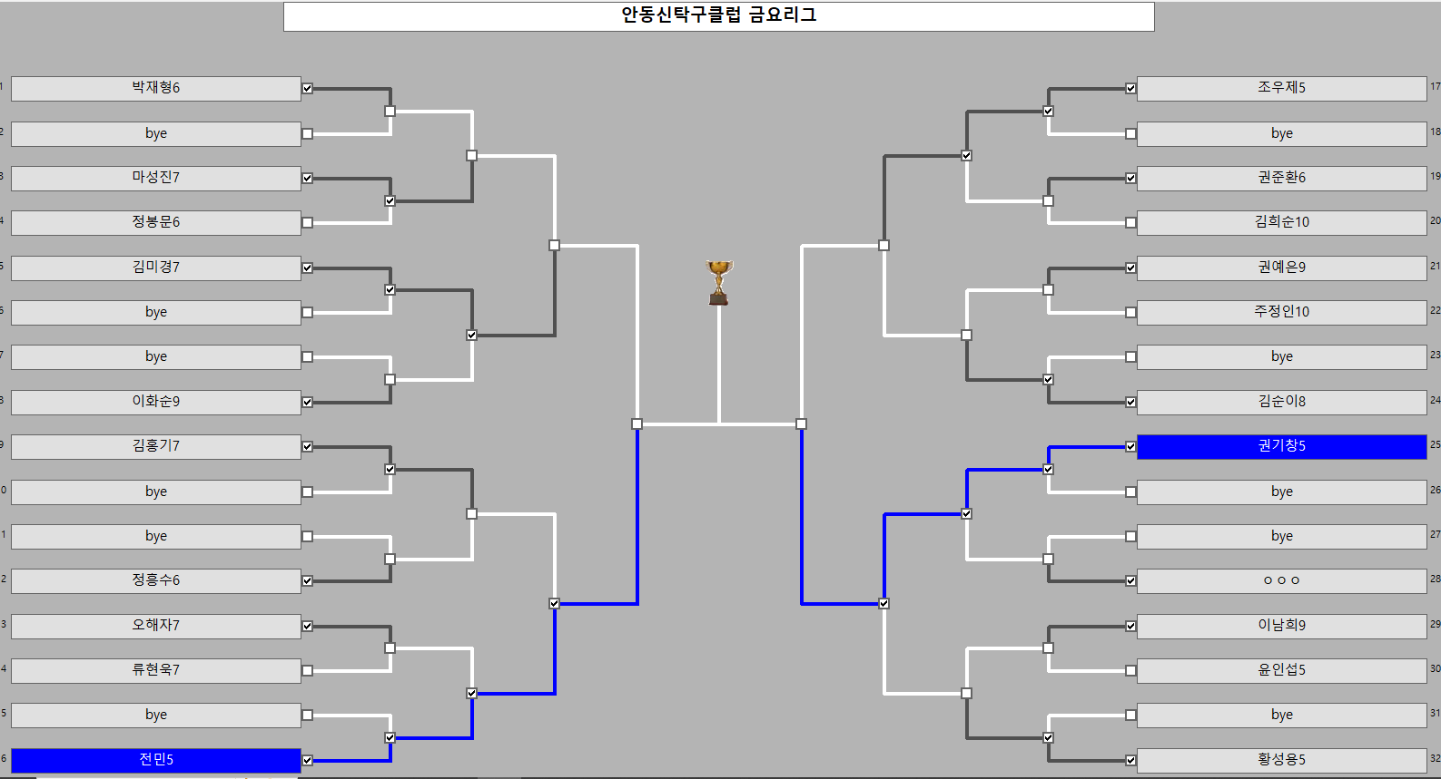 [스크랩] 안동 신탁구클럽 4월 10일 금요리그 결과 작성자신순성(신탁구클럽 )|작성시간26.04.10|조회수85 목록 댓글 0 글자크기 작게가 글자크기 크게가 공동우승: 전민 권기창동3위: 김미경 조우제축하드립니다.찬조: 권기훈회장님 음료1박스 김희순님 과자 감사합니다. 다음검색 스크랩 원문 : 경북탁구협회 현재 게시글 추가 기능 열기 북마크 공유하기 신고 센터로 신고 댓글 댓글 0 댓글쓰기 답글쓰기 댓글 리스트