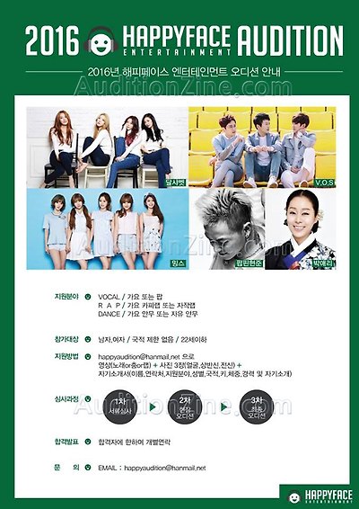 5. 접수방법 : 영상+지원서+사진첨부하여 happyaudition@hanmail.net 으로 접수