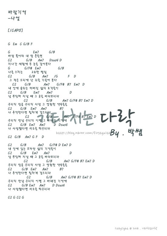 나얼 '바람기억' 가사와 코드 작성자엠뮤직|작성시간16.07.15|조회수378 목록 댓글 0 글자크기 작게가 글자크기 크게가 다음검색 현재 게시글 추가 기능 열기 북마크 공유하기 신고 센터로 신고 댓글 댓글 0 댓글쓰기 답글쓰기 댓글 리스트