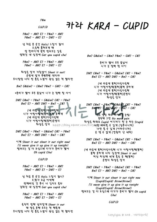 카라 '큐피드' 가사와 코드 작성자엠뮤직|작성시간16.12.12|조회수219 목록 댓글 0 글자크기 작게가 글자크기 크게가 다음검색 현재 게시글 추가 기능 열기 북마크 공유하기 신고 센터로 신고 댓글 댓글 0 댓글쓰기 답글쓰기 댓글 리스트
