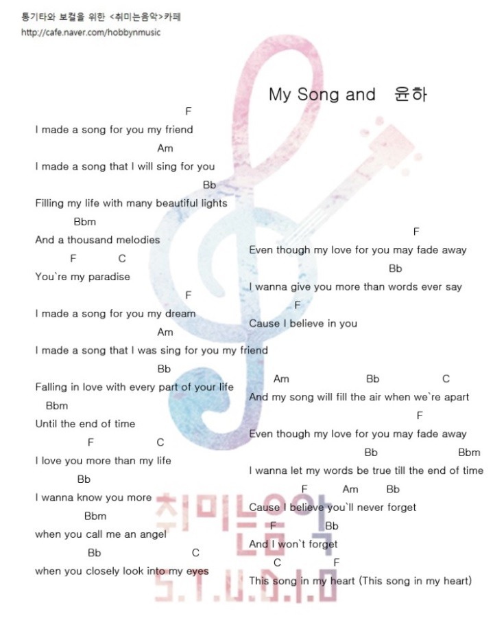 윤하 'My Song And' 가사와 코드 작성자엠뮤직|작성시간18.02.09|조회수350 목록 댓글 0 글자크기 작게가 글자크기 크게가 다음검색 현재 게시글 추가 기능 열기 북마크 공유하기 신고 센터로 신고 댓글 댓글 0 댓글쓰기 답글쓰기 댓글 리스트