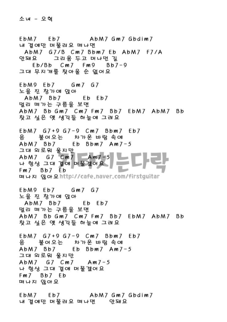 오혁 '소녀' 가사와 코드 작성자엠뮤직|작성시간18.06.25|조회수1,635 목록 댓글 0 글자크기 작게가 글자크기 크게가 다음검색 현재 게시글 추가 기능 열기 북마크 공유하기 신고 센터로 신고 댓글 댓글 0 댓글쓰기 답글쓰기 댓글 리스트