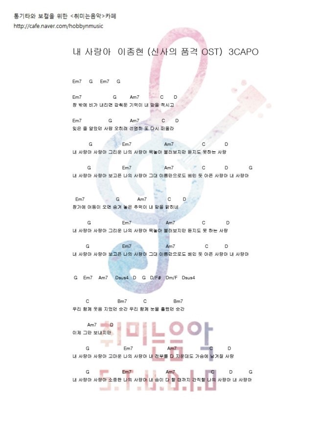 이종현 '내사랑아' 가사와 코드 작성자엠뮤직|작성시간18.10.01|조회수436 목록 댓글 0 글자크기 작게가 글자크기 크게가 다음검색 현재 게시글 추가 기능 열기 북마크 공유하기 신고 센터로 신고 댓글 댓글 0 댓글쓰기 답글쓰기 댓글 리스트