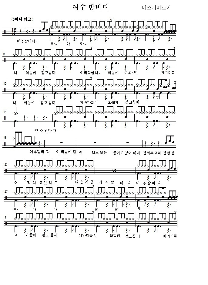 버스커버스커 '여수 밤바다' 드럼악보 작성자엠뮤직|작성시간18.01.20|조회수854 목록 댓글 0 글자크기 작게가 글자크기 크게가 다음검색 현재 게시글 추가 기능 열기 북마크 공유하기 신고 센터로 신고 댓글 댓글 0 댓글쓰기 답글쓰기 댓글 리스트