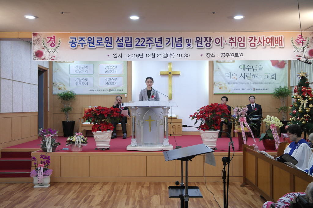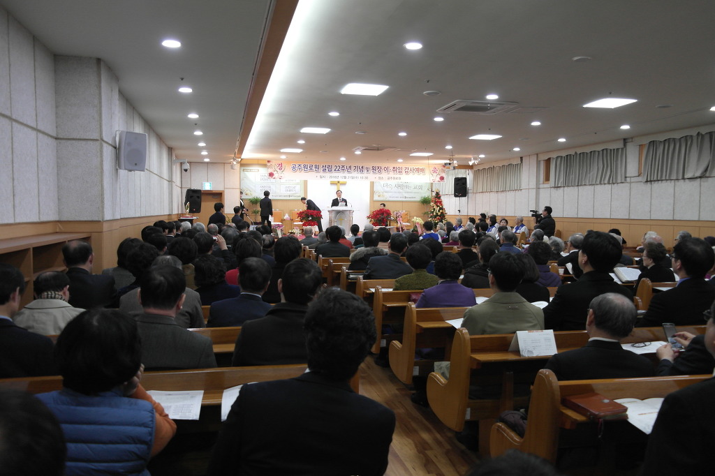 공주원로원 이혜진 원장(원안 사진) 취임식이 원로원 성도들 및 교단 관계자들과 지역교회 목회자들이 함께한 가운데 12월 21일 오전 10시30분, 공주원로원 교회에서 있었다. 1부 예배는 원로원교회 담임목사인 최종목 목사의 사회로 차주옥 장로(영락교회/충주노회장)의 기도, 한국장로교복지재단 이사장인 민경설목사(광진교회)의 '어떻게 사는 것이 잘사는 것인가"라는 제목의 설교가 있었다. 2부로 진행된 원장 이취임식은 대광교회 강현원 목사의 사회로 진행된 가운데 원로원 총무부장인 임종각 장로의 경과보고, 대광복지재단 이사장인 오정호 장로의 이임하는 허정남 목사에게 공로패 및 선물 증정, 허정남 목사의 이임사, 민경설 목사의 취임하는 이혜진 권사에게 임명장 수여, 이혜진 원장의 취임사, 우미숙 권사의 축가 등이 있었다. 한편 창립 22주년 행사는 장수어르신 축하, 장기입주어르신 축하, 공로패 및 감사패(최종목 담임목사 이교억 감사, 임종각 총무부장 등) 수여, 축사(증경부총회장 정계옥 장로), 격려사(전북동노회장 최홍렬 목사)에 이어 서울관악노회장 최용호 목사의 축도가 있었다.