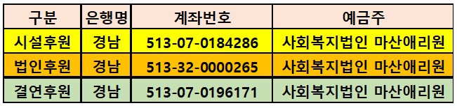 <시설·법인·결연 후원 계좌번호 안내>