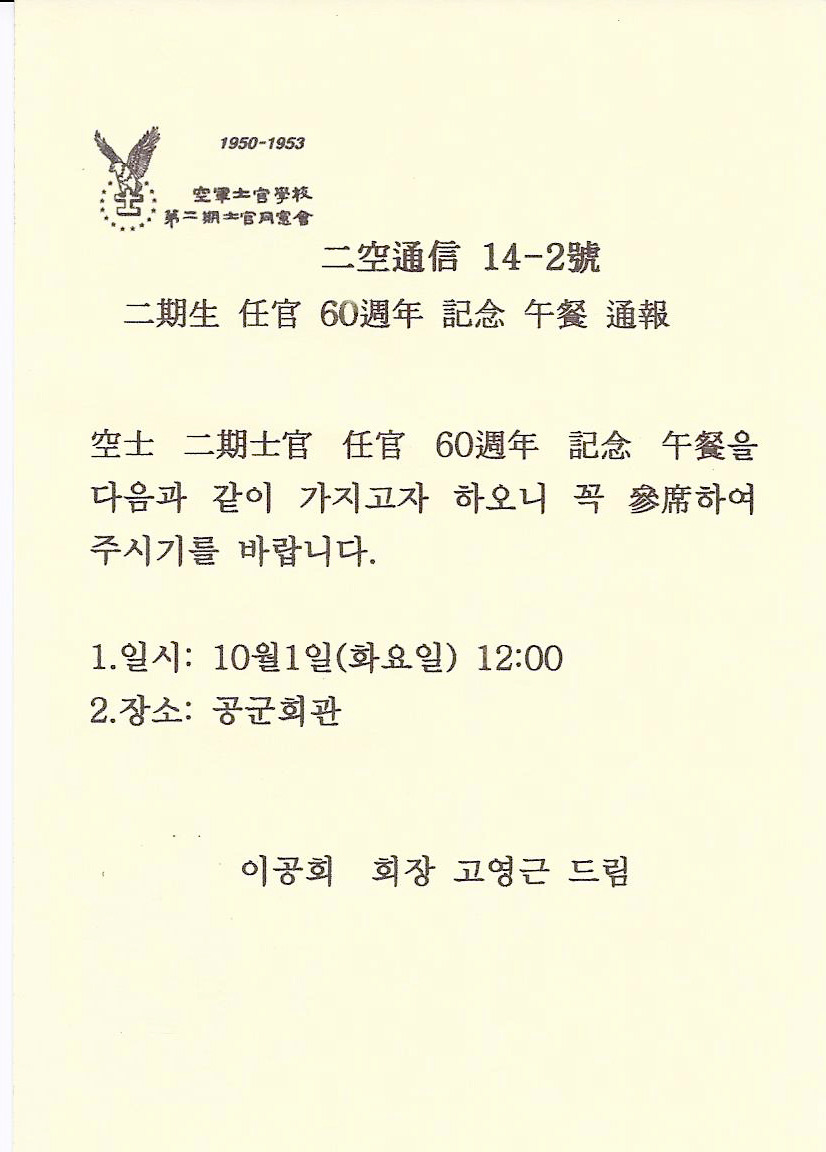 二空通信 第14-3號 (2013.9.13) 60週年 記念 午餐 通報 작성자이영수|작성시간13.09.13|조회수66 목록 댓글 0 글자크기 작게가 글자크기 크게가 二空通信 第14-2 2013.09.13 다음검색 현재 게시글 추가 기능 열기 북마크 신고 센터로 신고 댓글 댓글 0 댓글쓰기 답글쓰기 댓글 리스트