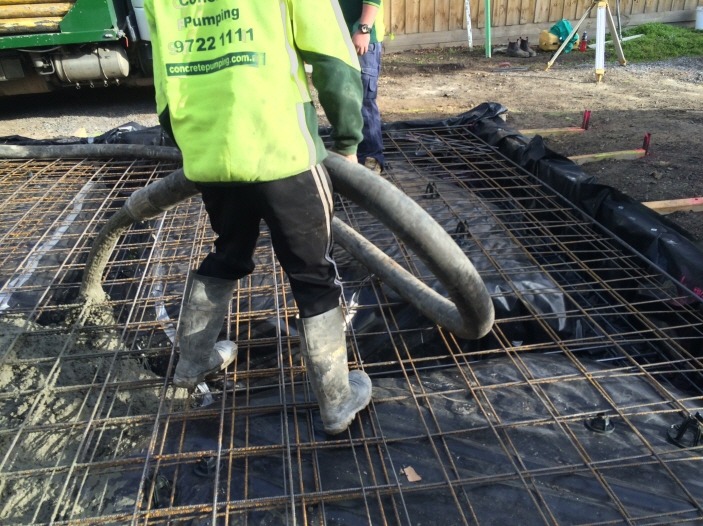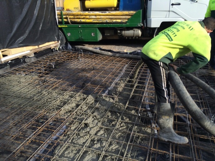 콘크리트 펌프가 와서 콘크리트를 붓는 모습입니다. 장화 꼭 신어야 합니다. ^^;;