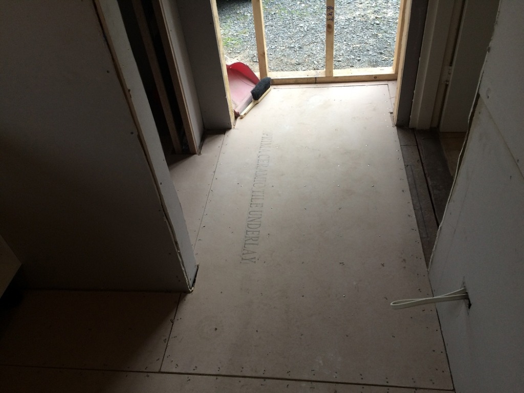 타일을 붙이기 위해 tile underlay sheet도 깔았습니다.
