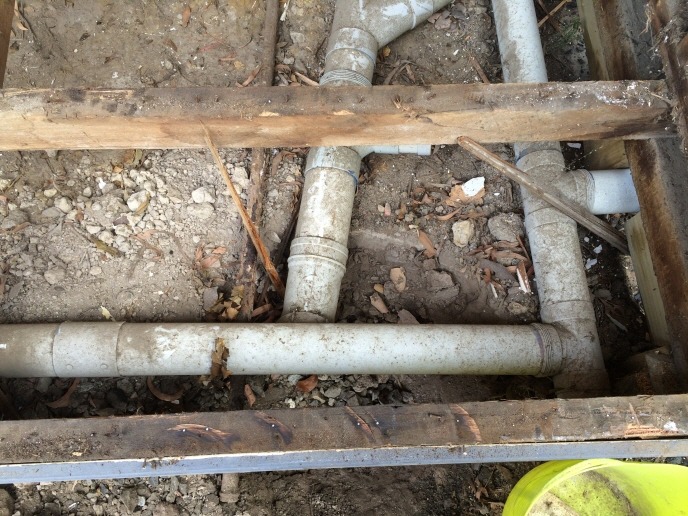 세월의 흔적으로 누군가 핸디맨이 와서 배관을 하고 도망간 흔적입니다. 개판오분전으로 glue도 없이 파이프를 붙여놓고 그대로 끼워만 두고 갔더군요..--;;