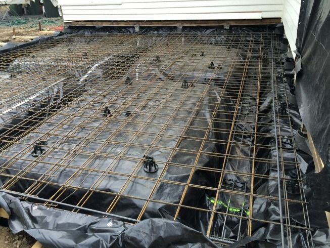 콘크리트를 붓기전에 비닐로 실제지면을 덮어 줍니다.