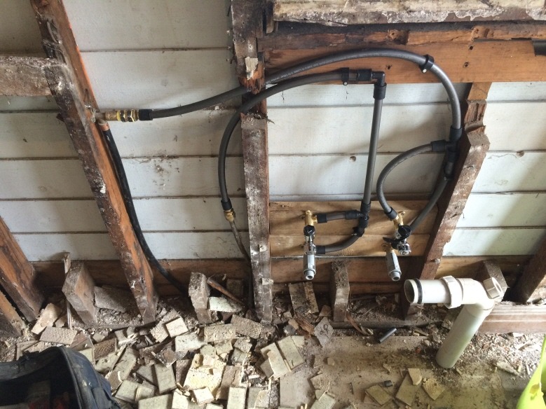 위의 세탁실 벽을 철거후 새로운 sink를 넣기전 새로운 수도관을 넣은 모습니다. weather board와 plaster 사이에 단열재가 없죠..이러니 weather board집이 얼마나 춥겠습니까? 안그래도 추운 멜번에서 weather board 집이라면 제가 살집을 고른다면 쳐다보지도 않겠죠..--;;