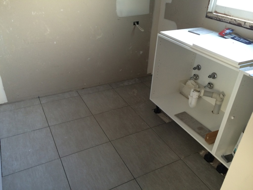 전기콘센트 구멍과 전기선도 빼놓았고 바닥타일도 했습니다. 그라우트는 좀 있다가 할 예정..
