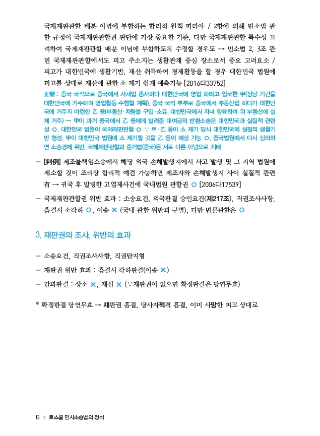 넷째, 편집 개선으로 가독성이 매우 향상되었습니다. 본서만의 특징인 중요 키워드 ‘행잘림’이나 논점 ‘페이지잘림’ 방지 작업은 여전히 완수되었고(이러한 편집의 수험 막판 중요성은 「로민정」 제3판 머리말 참조), 제2판까지는 내용이나 판례를 연이어 붙여 서술했던 부분도 다른 행으로 분리하여 좀 더 읽기가 편해졌습니다