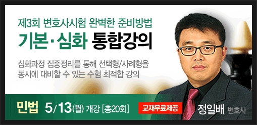 [COMING SOON] 정일배 변호사 민법 기본/심화 통합강의(5/13<월>실강개강) 동영상 수강권 6명 무료제공 이벤트 예고