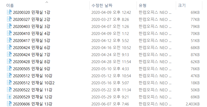 코로나로 진행되었던 온라인 수업 직접 다 들으면서 녹취한 필기입니다.