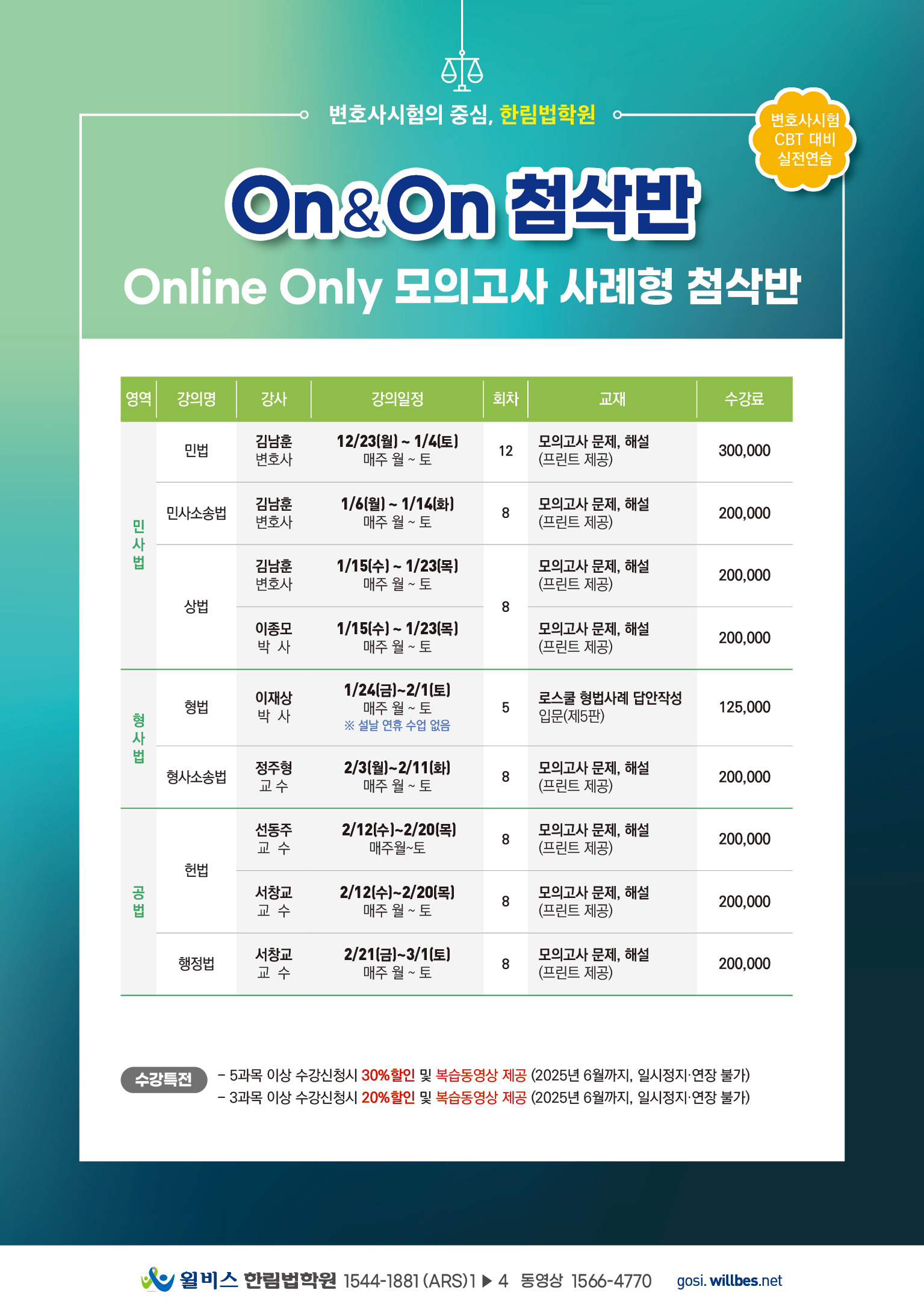 [on&on] 변호사시험 CBT대비 겨울방학 실전사례연습 시간표 작성자한림법학원|작성시간24.12.11|조회수144 목록 댓글 0 글자크기 작게가 글자크기 크게가 다음검색 현재 게시글 추가 기능 열기 북마크 공유하기 신고 센터로 신고 댓글 댓글 0 댓글쓰기 답글쓰기 댓글 리스트