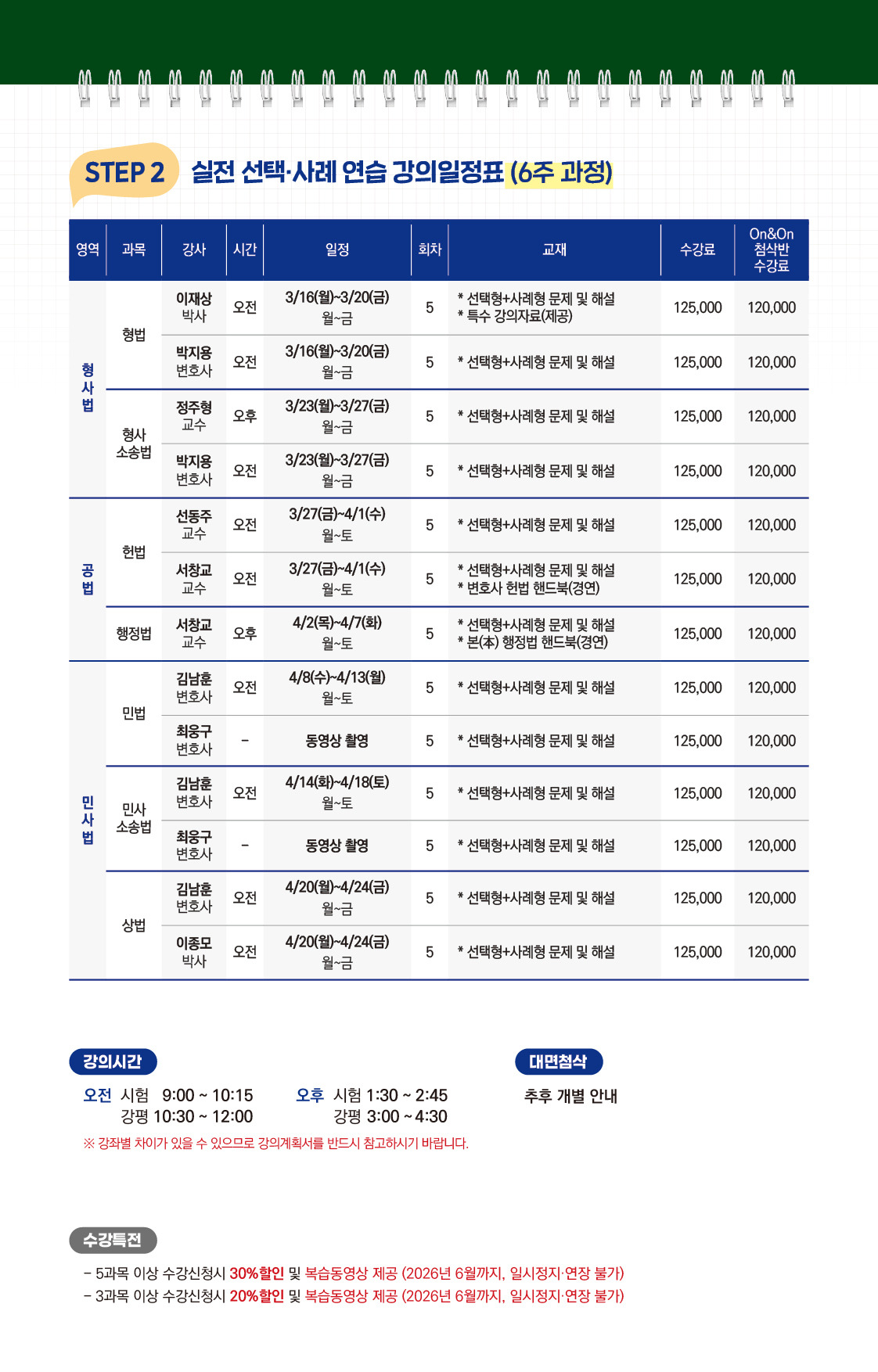 [실전연습] 2026 고득점 실전 연습 On&On 첨삭반 시간표 작성자한림법학원|작성시간26.01.02|조회수39 목록 댓글 0 글자크기 작게가 글자크기 크게가 다음검색 현재 게시글 추가 기능 열기 북마크 공유하기 신고 센터로 신고 댓글 댓글 0 댓글쓰기 답글쓰기 댓글 리스트