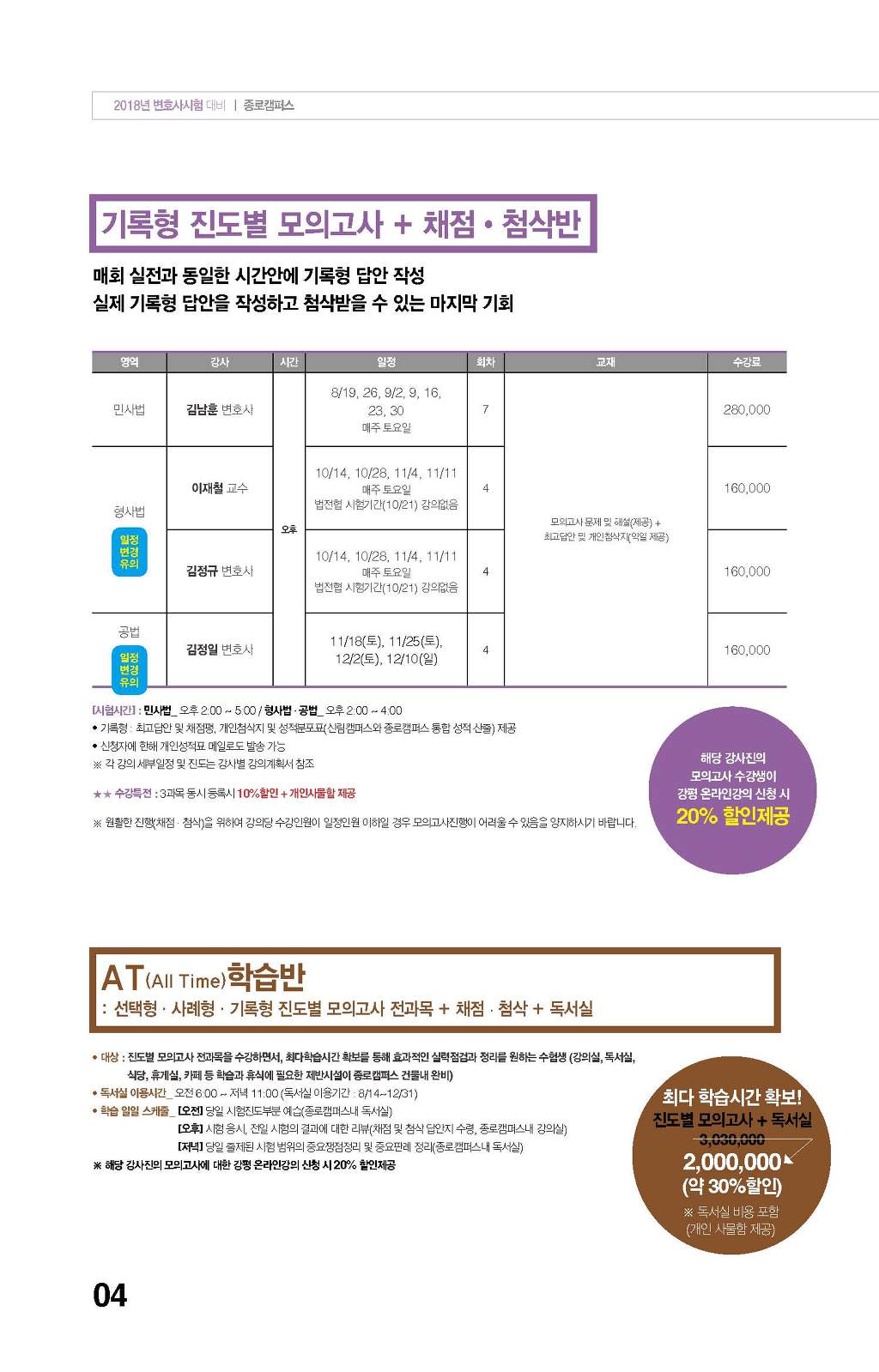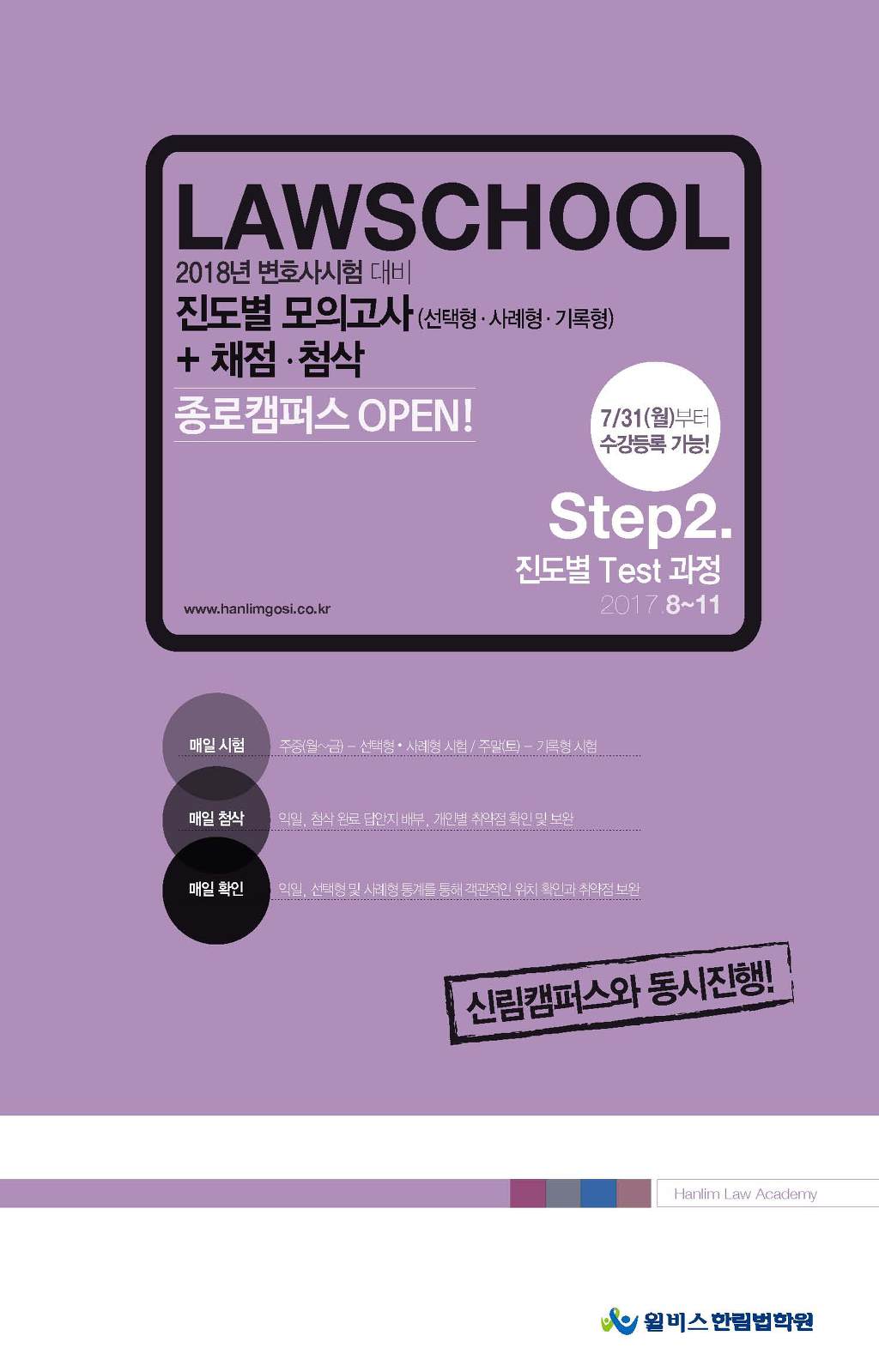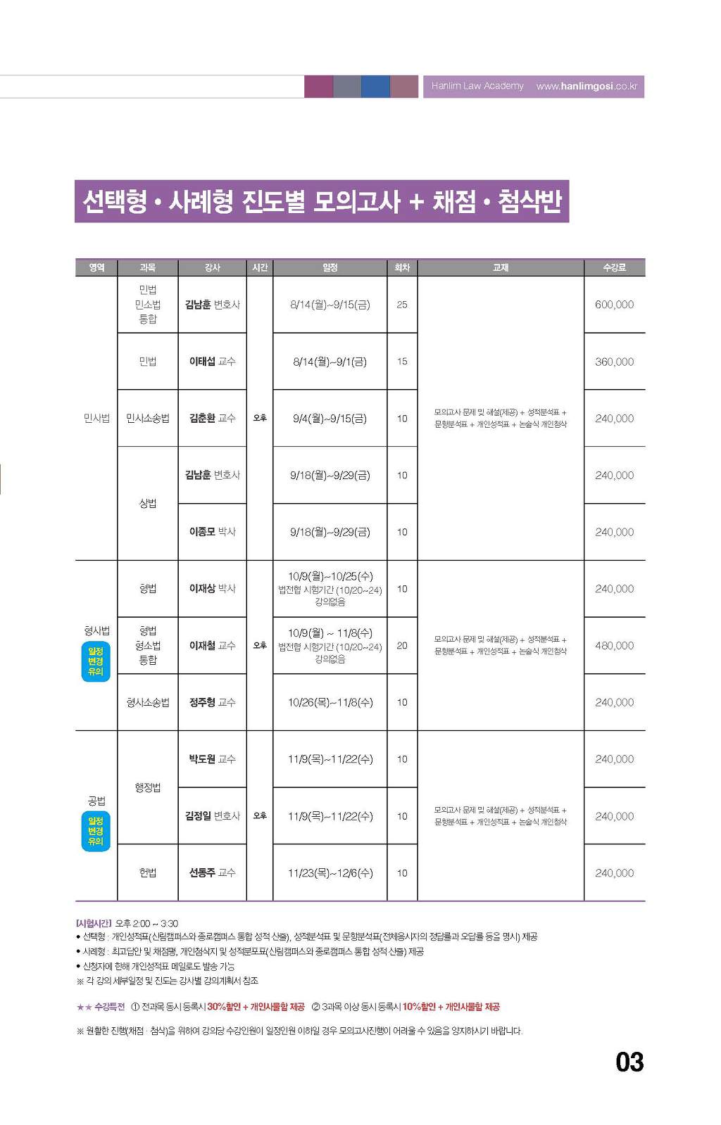 [Step2]전격 오픈! 종로캠퍼스 8월~11월 시간표(Step2. 진도별 모의고사) 일정변경유의 작성자한림법학원|작성시간17.07.20|조회수360 목록 댓글 2 글자크기 작게가 글자크기 크게가 다음검색 현재 게시글 추가 기능 열기 북마크 공유하기 신고 센터로 신고 댓글 댓글 2 댓글쓰기 답글쓰기 댓글 리스트 삭제된 댓글입니다. 답댓글 작성자한림법학원 작성자 본인 여부 작성자 | 작성시간 17.07.21 종로캠퍼스에서 진행되는 모의고사반은 시험 및 채점만 가능하시며 강평을 원하시면 수강신청하신 강사님의 온라인 강의를 20%할인해드립니다^^ 댓글 전체보기