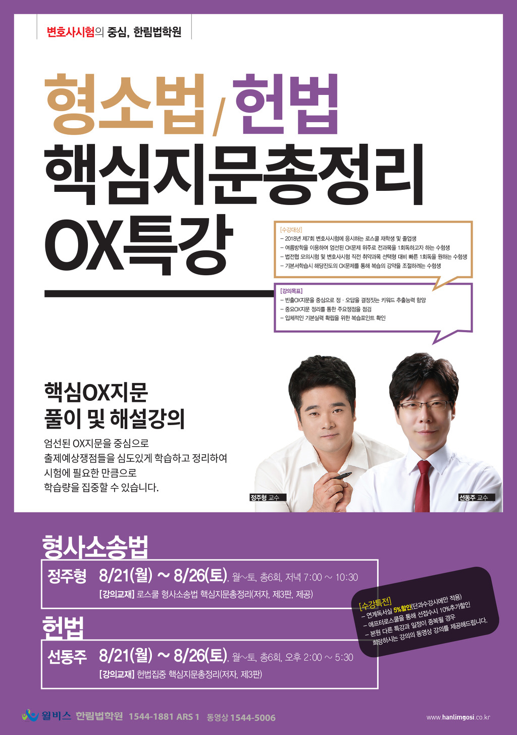 [핵지총]선동주 교수 헌법, 정주형 교수 형사소송법 핵심지문총정리 OX특강(8/21,월) 작성자한림법학원|작성시간17.08.16|조회수168 목록 댓글 0 글자크기 작게가 글자크기 크게가 다음검색 현재 게시글 추가 기능 열기 북마크 공유하기 신고 센터로 신고 댓글 댓글 0 댓글쓰기 답글쓰기 댓글 리스트