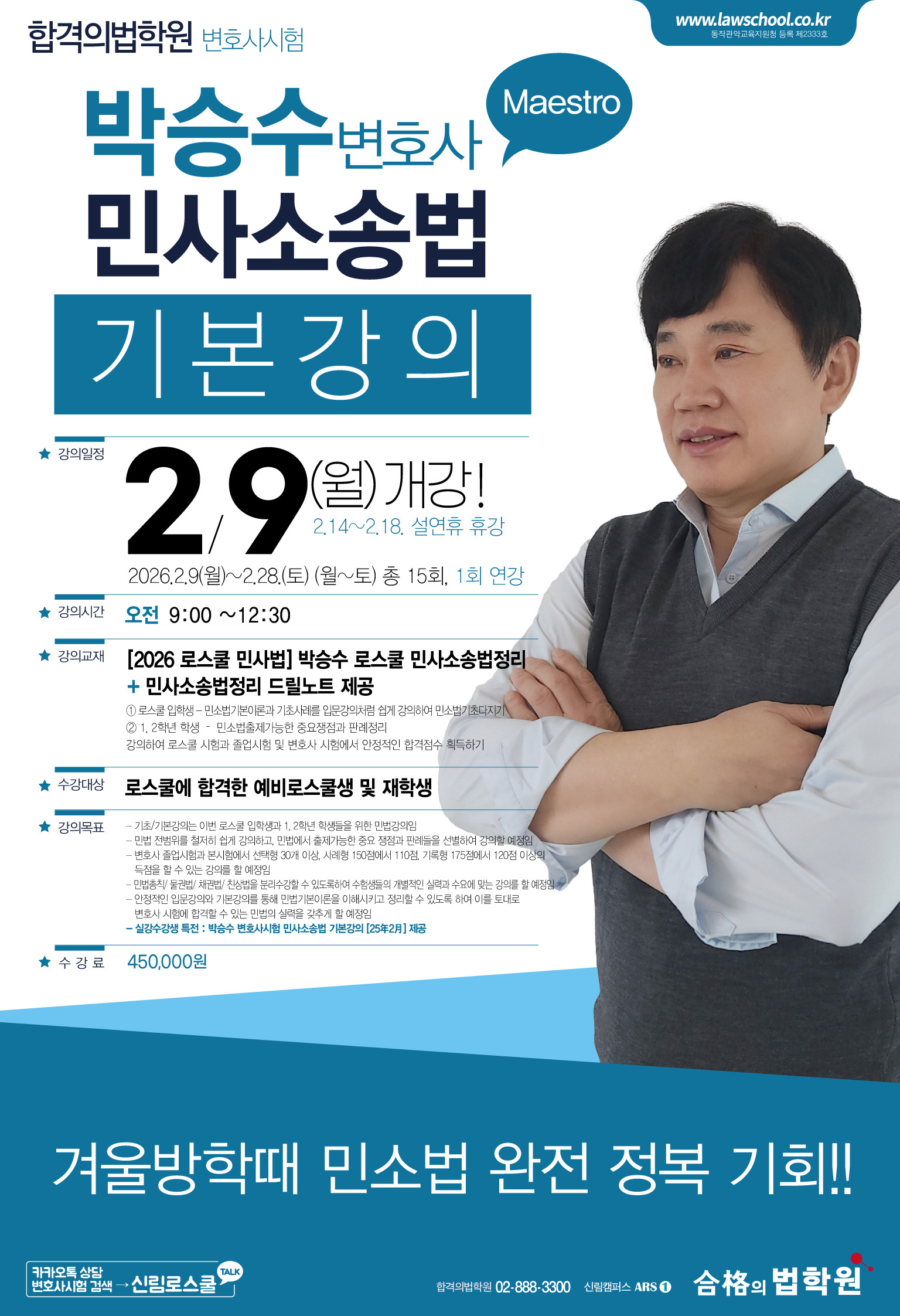 [합격의법학원] 변호사시험 박승수 민사소송법 기본강의 (2/9,월 개강) 작성자합격의법학원|작성시간26.01.02|조회수61 목록 댓글 0 글자크기 작게가 글자크기 크게가 다음검색 현재 게시글 추가 기능 열기 북마크 공유하기 신고 센터로 신고 댓글 댓글 0 댓글쓰기 답글쓰기 댓글 리스트