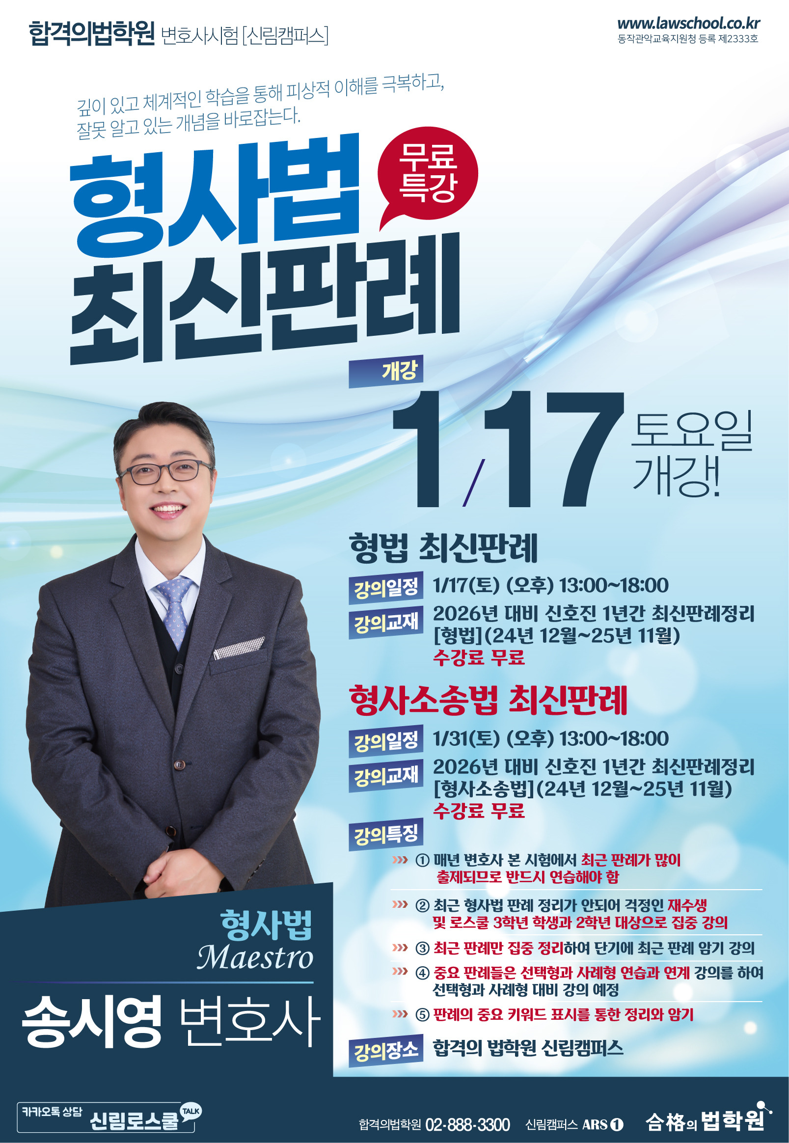 [합격의법학원] 변호사시험 송시영 형사법 최신판례(1/17,토 개강) 작성자합격의법학원|작성시간26.01.07|조회수47 목록 댓글 0 글자크기 작게가 글자크기 크게가 다음검색 현재 게시글 추가 기능 열기 북마크 공유하기 신고 센터로 신고 댓글 댓글 0 댓글쓰기 답글쓰기 댓글 리스트