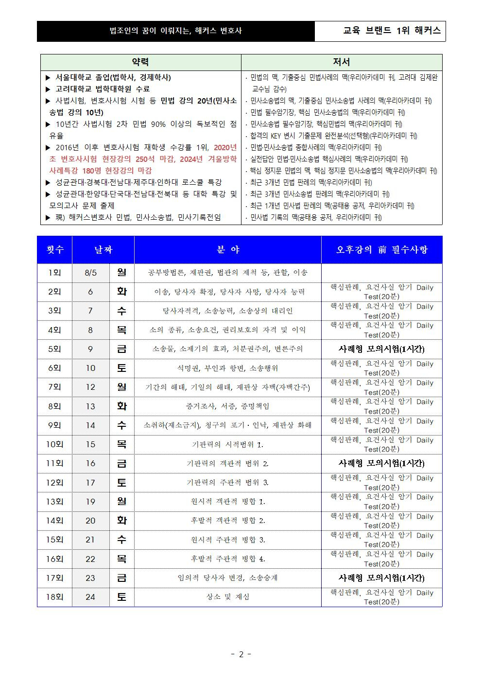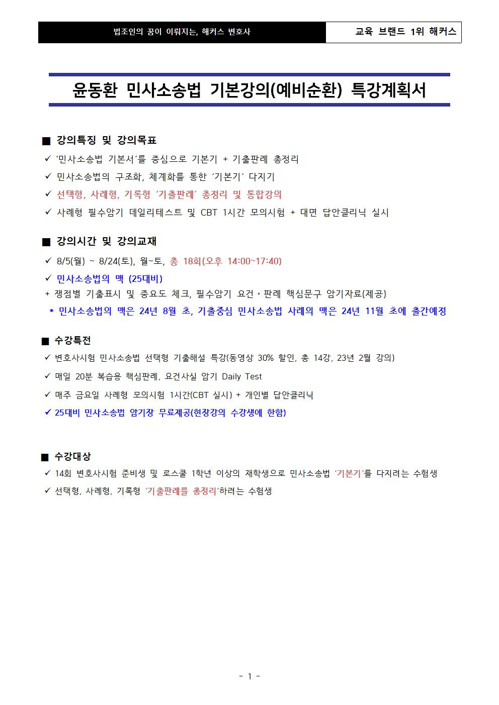 윤동환 민사소송법 기본강의 개강(8월 5일) 작성자윤동환|작성시간24.07.30|조회수122 목록 댓글 1 글자크기 작게가 글자크기 크게가 다음검색 현재 게시글 추가 기능 열기 북마크 신고 센터로 신고 댓글 댓글 1 댓글쓰기 답글쓰기 댓글 리스트 작성자윤동환 작성자 본인 여부 작성자 | 작성시간 24.07.30 강의진행 및 수험상담은 단톡방 "24년 윤동환 민사법 강의" 또는 제 개인톡(dhyoon21)으로 질문해 주시면 됩니다. 윤동환과 함께 민사법의 바다에 풍~덩, 건강하게 알찬 여름 보내시길 응원드립니다. 홧팅! 댓글 전체보기