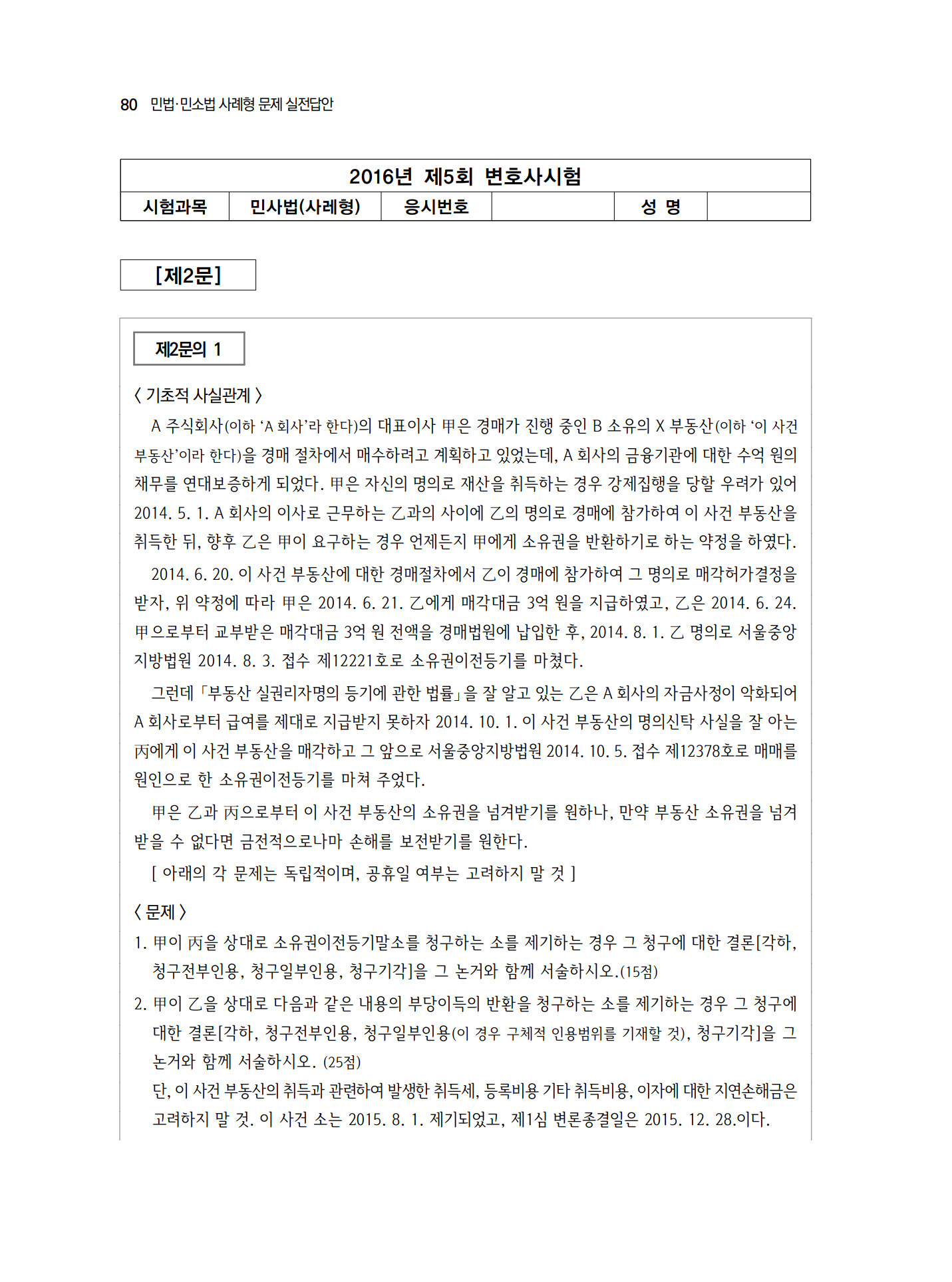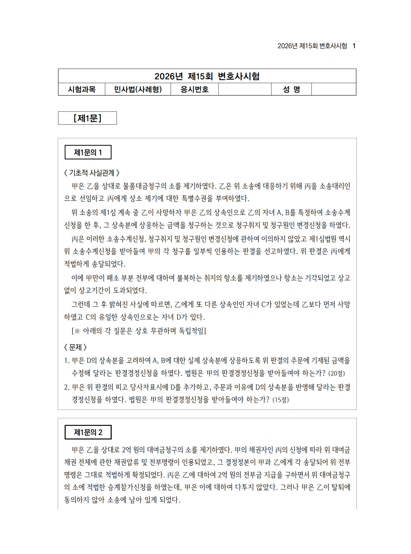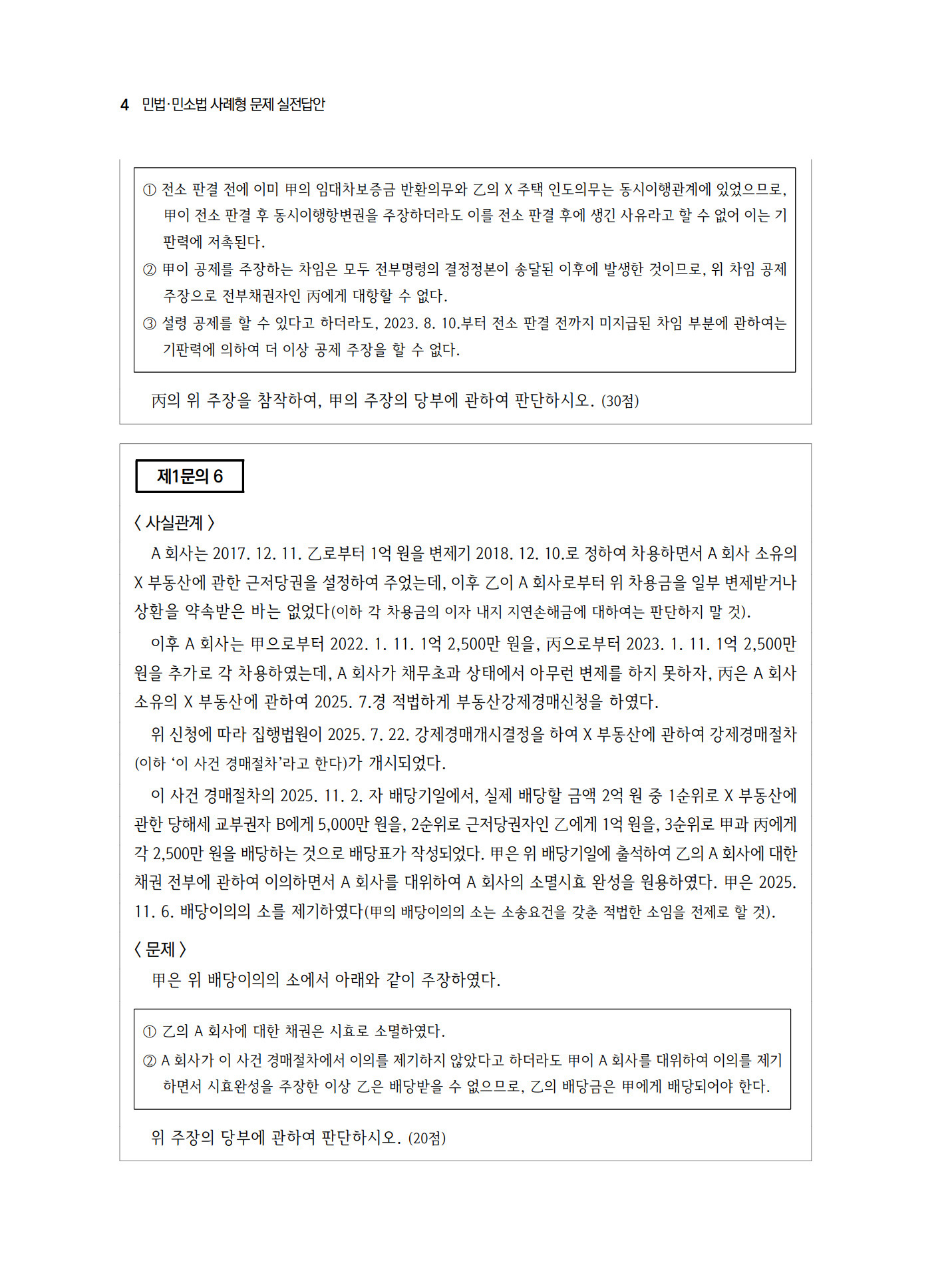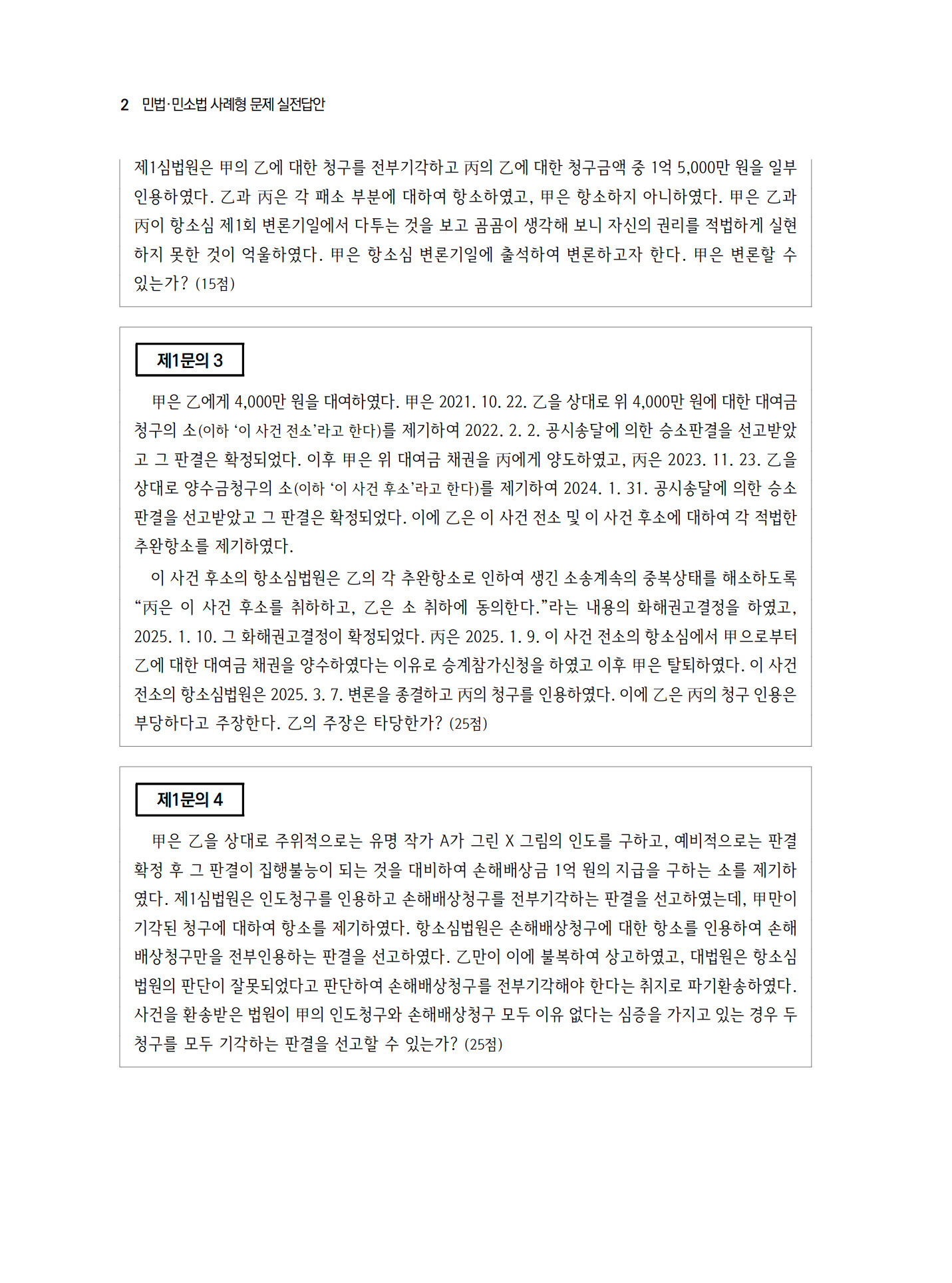 [스크랩] [신간 안내]2027대비 민법·민소법 사례형문제 CBT답안(실전답안) 작성자도서출판 학연|작성시간26.02.12|조회수27 목록 댓글 0 글자크기 작게가 글자크기 크게가 1. 2027대비 민법·민소법 사례형문제 CBT답안(실전답안)_일부.pdf1.36MB2. 2027대비 민법·민소법 사례형문제 CBT답안(실전답안)_제원+머리말 등.hwp36.50KB 첨부파일첨부된 파일이 11개 있습니다. jpg 파일 2027대비 민법·민소법 사례형문제 CBT답안(실전답안)_앞면표지.jpg 다운로드 jpg 파일 1. 2027대비 민법·민소법 사례형문제 CBT답안(실전답안)_일부_01.jpg 다운로드 jpg 파일 1. 2027대비 민법·민소법 사례형문제 CBT답안(실전답안)_일부_02.jpg 다운로드 jpg 파일 1. 2027대비 민법·민소법 사례형문제 CBT답안(실전답안)_일부_03.jpg 다운로드 jpg 파일 1. 2027대비 민법·민소법 사례형문제 CBT답안(실전답안)_일부_07.jpg 다운로드 jpg 파일 1. 2027대비 민법·민소법 사례형문제 CBT답안(실전답안)_일부_05.jpg 다운로드 jpg 파일 1. 2027대비 민법·민소법 사례형문제 CBT답안(실전답안)_일부_04.jpg 다운로드 jpg 파일 1. 2027대비 민법·민소법 사례형문제 CBT답안(실전답안)_일부_08.jpg 다운로드 jpg 파일 1. 2027대비 민법·민소법 사례형문제 CBT답안(실전답안)_일부_06.jpg 다운로드 hwp 파일 2. 2027대비 민법·민소법 사례형문제 CBT답안(실전답안)_제원+머리말 등.hwp 다운로드 pdf 파일 1. 2027대비 민법·민소법 사례형문제 CBT답안(실전답안)_일부.pdf 다운로드 다음검색 스크랩 원문 : 학연출판사 현재 게시글 추가 기능 열기 북마크 공유하기 신고 센터로 신고 댓글 댓글 0 댓글쓰기 답글쓰기 댓글 리스트